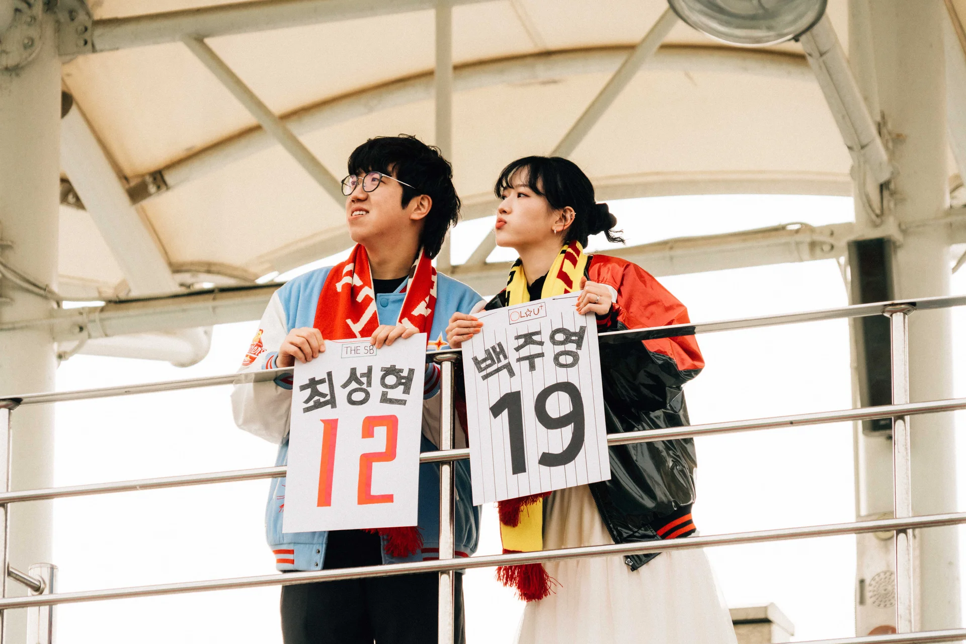 핵심 의상 | 응원 팀 점퍼 및 유니폼 | 커플의 공통된 취미와 개성을 직관적으로 표현 |
