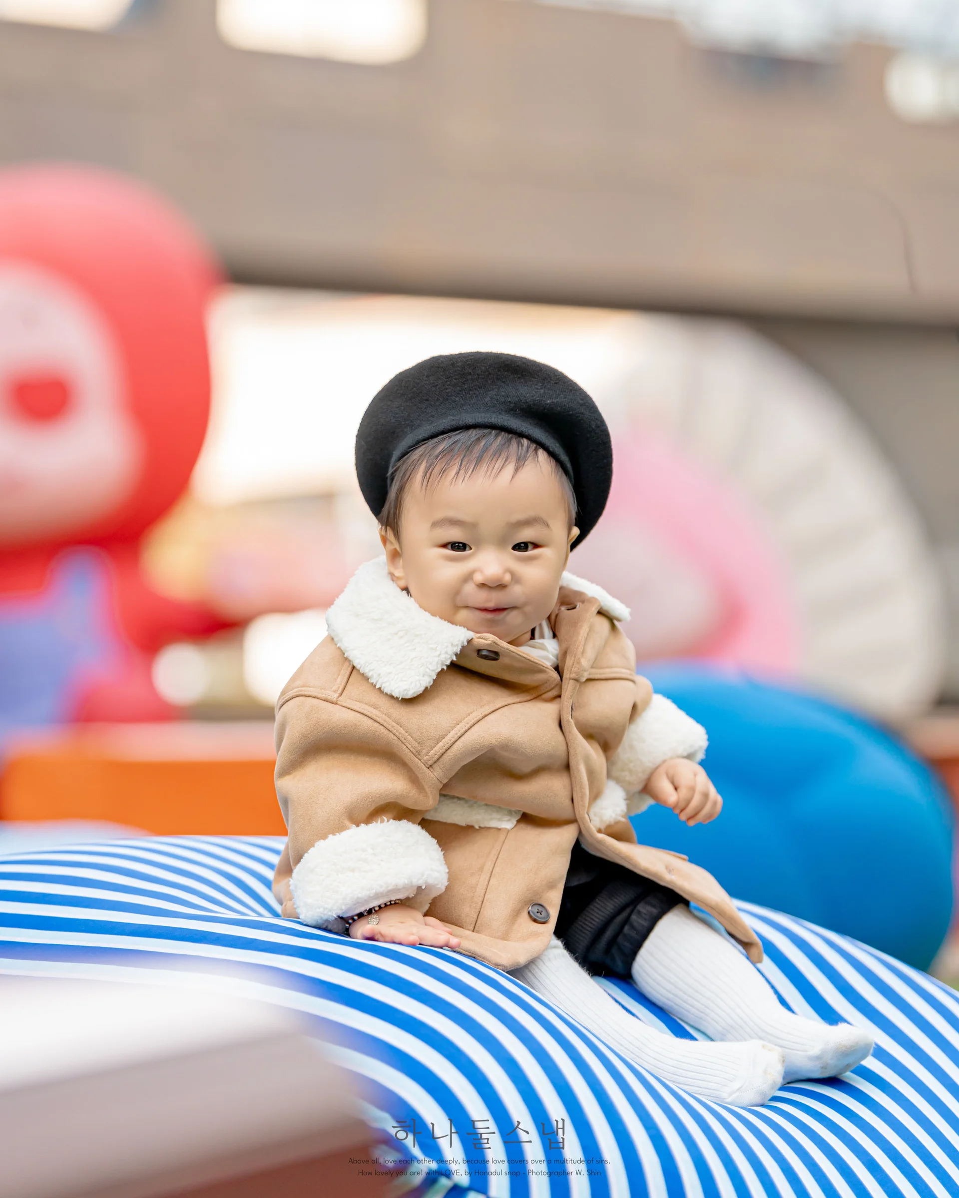 돌잔치 촬영의 성패는 아이의 기분에 달려 있습니다. 촬영 당일 다소 쌀쌀한 날씨였음에도 불구하고, 하나둘스냅은 아이의 리듬에 맞춰 짧은 시간 안에 핵심 컷들을 빠르게 포착했습니다. 억지스러운 연출보다는 부모님과의 교감을 통해 터져 나오는 자연스러운 미소를 포착하여 결과물에 가족의 온기를 그대로 녹여냈습니다.
