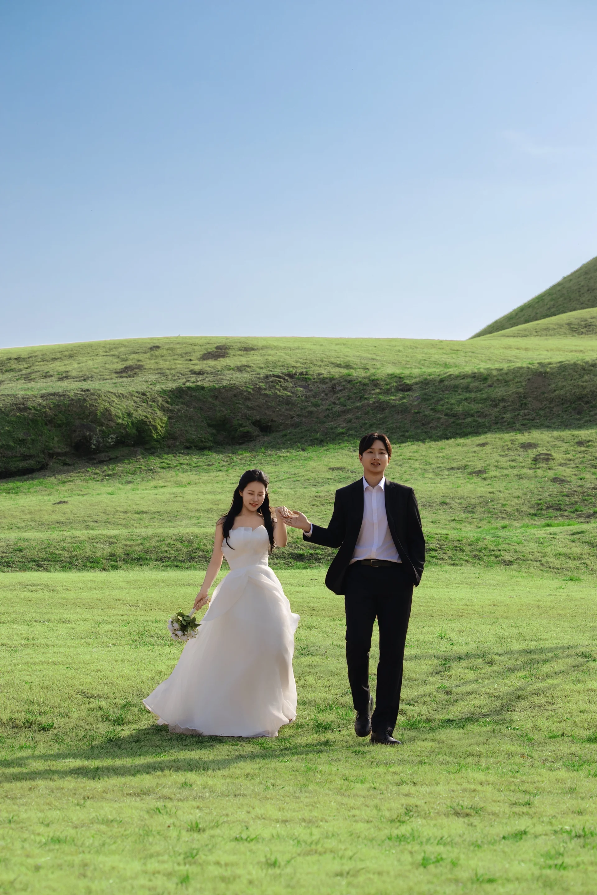 대구 고분군은 넓은 언덕과 탁 트인 풍경 덕분에 야외 웨딩 촬영의 성지로 불리는 곳입니다.