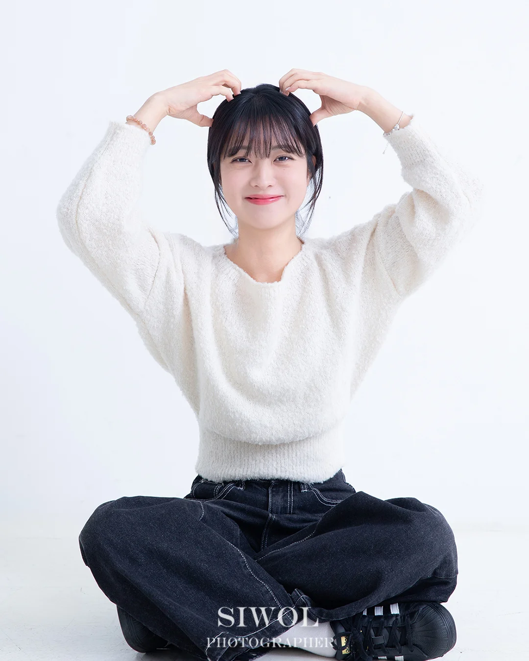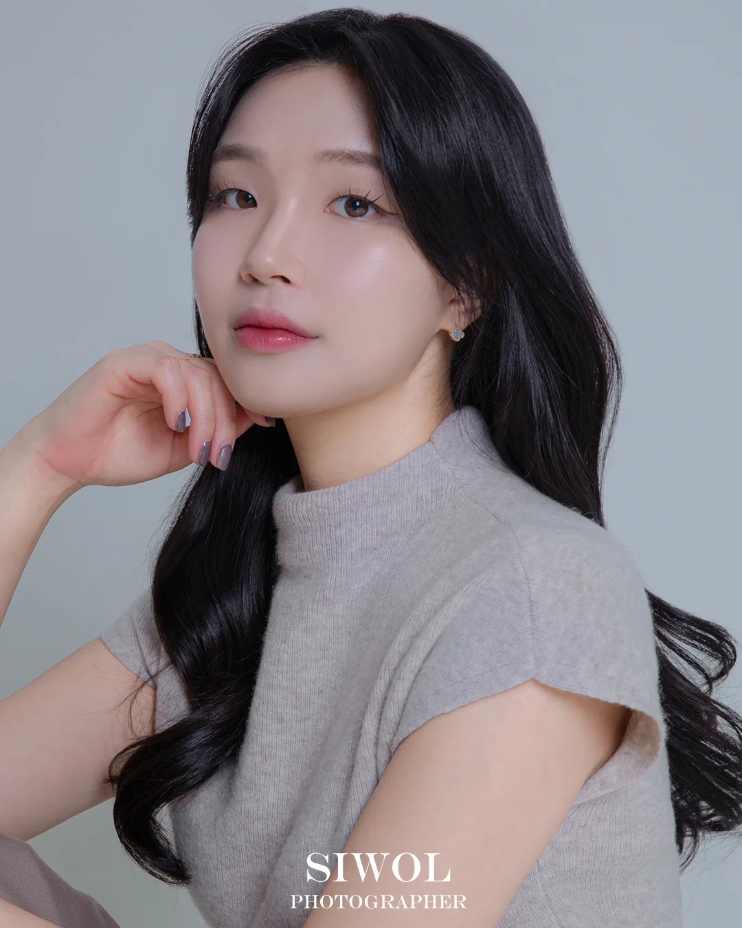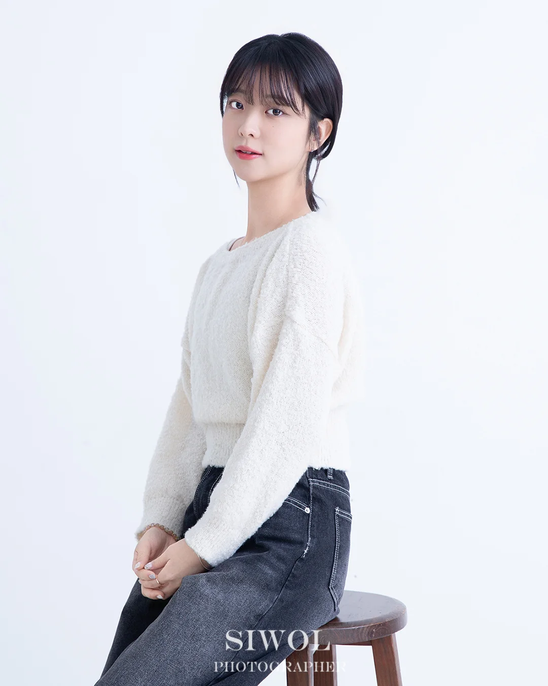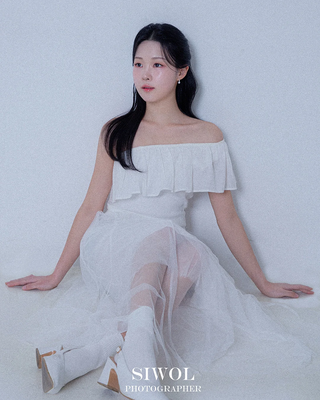 인물에 집중하는 미니멀리즘: 깔끔한 화이트 배경을 기반으로 촬영이 진행되어, 배경에 묻히지 않고 인물의 이목구비와 분위기가 가장 돋보이는 환경을 제공합니다.