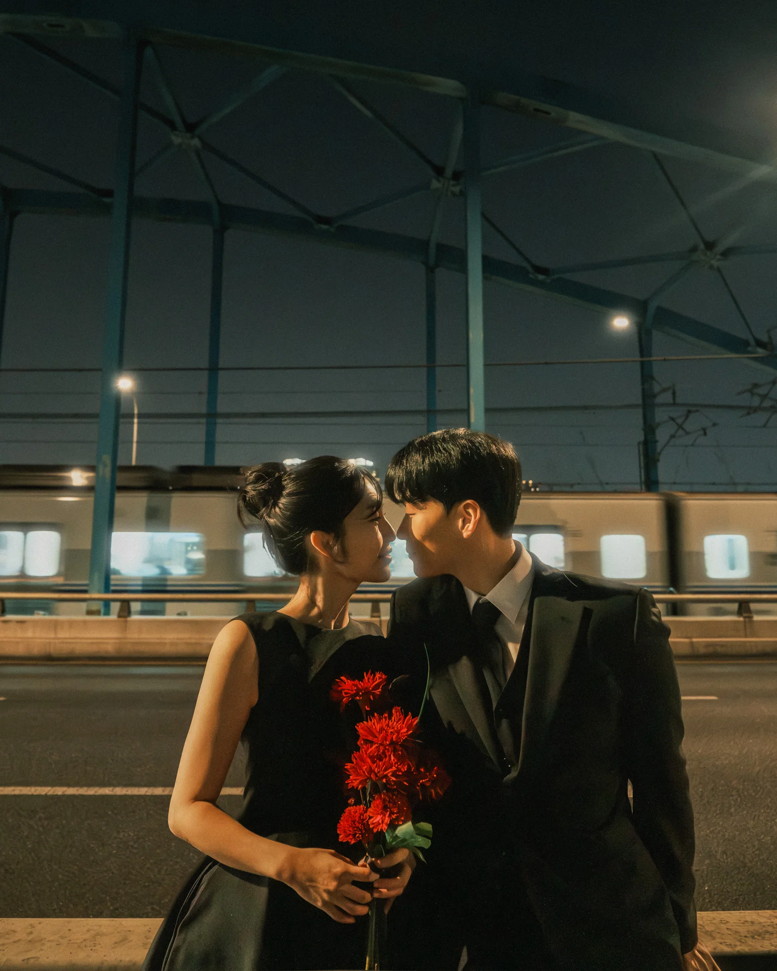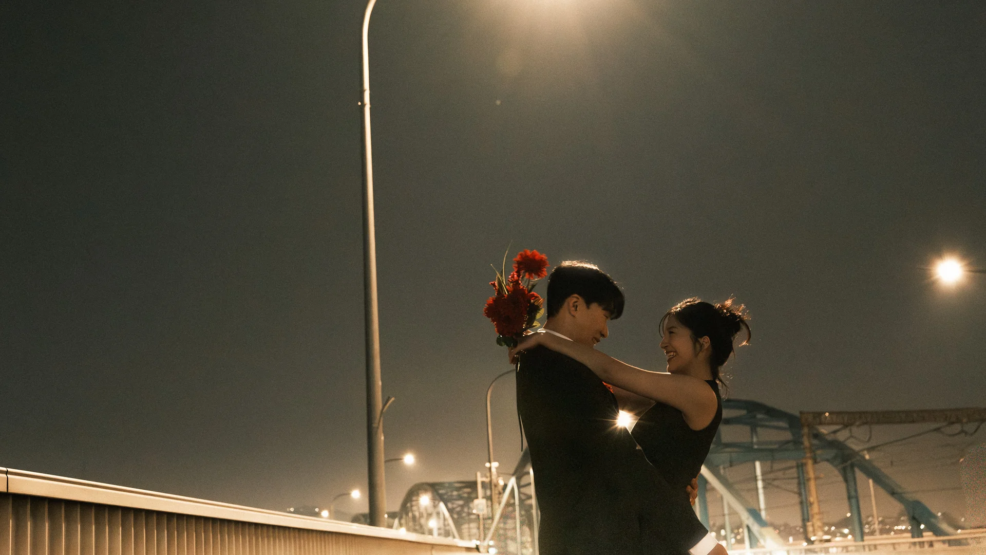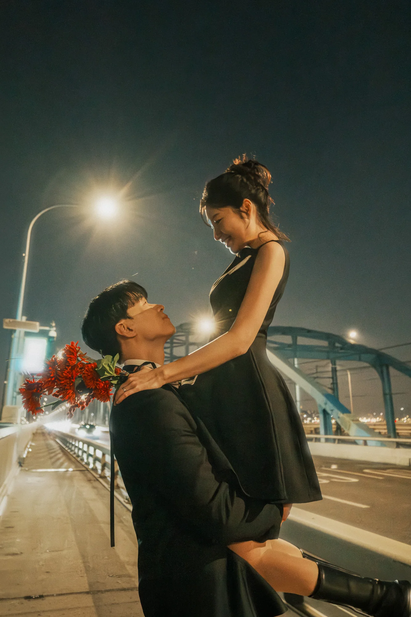 • 로케이션 2: 동작대교 (오후 6시 이후 야경) 해방촌에서 차량으로 5분이면 도착하는 동작대교는 서울의 도시 불빛과 한강의 정취를 동시에 담을 수 있는 스팟입니다. 가로등과 차량 잔상, 그리고 지나가는 지하철을 배경으로 삼아 정적인 웨딩 사진에 생동감 넘치는 '흐름'을 부여합니다.
