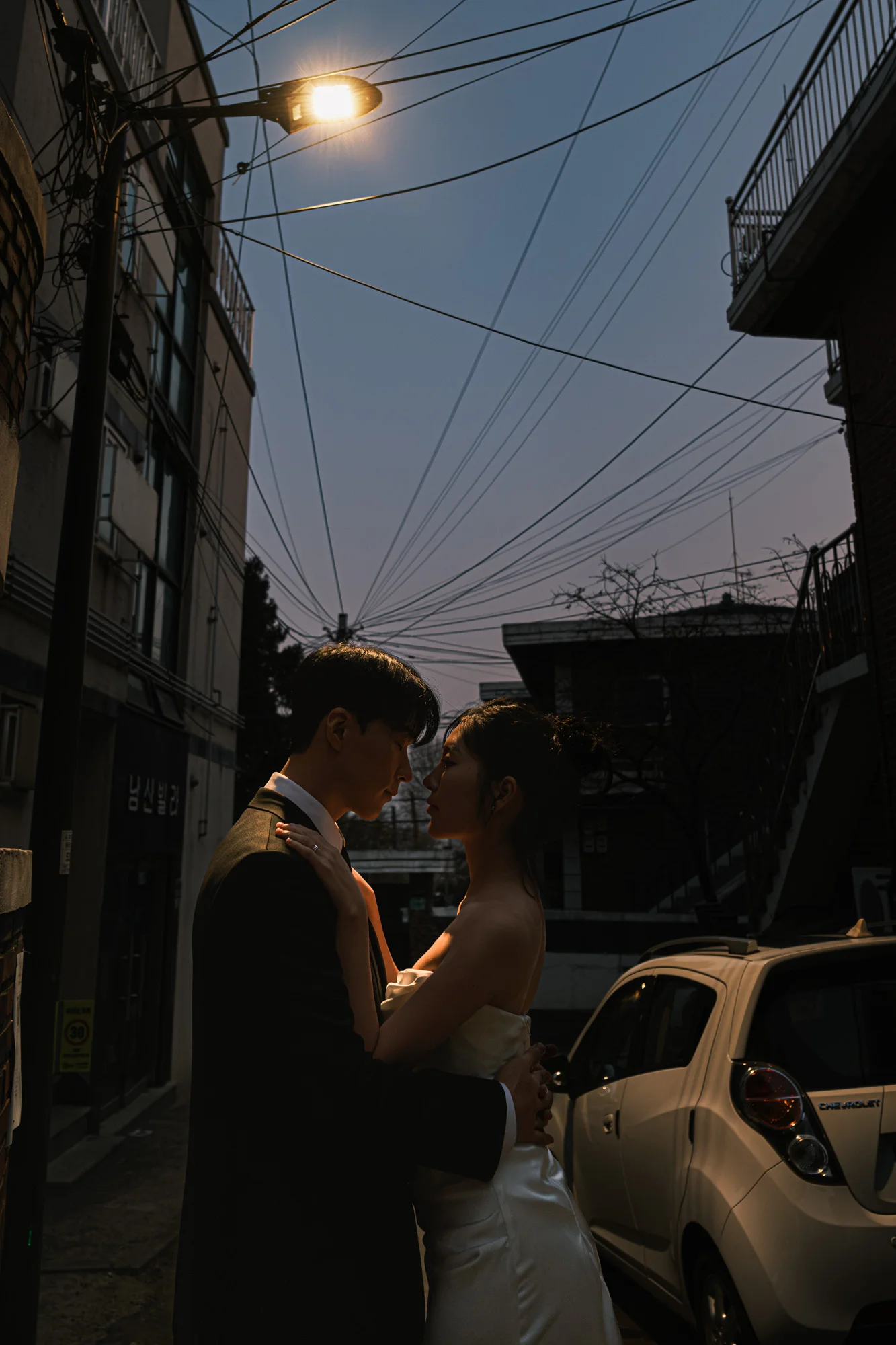이번 촬영은 해방촌의 골든아워로 시작해 동작대교의 도시 야경으로 마무리되는 서울 도심 최적의 동선에서 진행되었습니다. 두 장소는 차량으로 약 5분 내외 거리에 위치해 있어 빛의 변화를 놓치지 않고 연속성 있게 촬영할 수 있다는 장점이 있습니다. 특히 차분한 의상 톤과 서울의 밤거리를 조화시킨 시네마틱한 연출로 고객 만족도를 극대화했습니다.