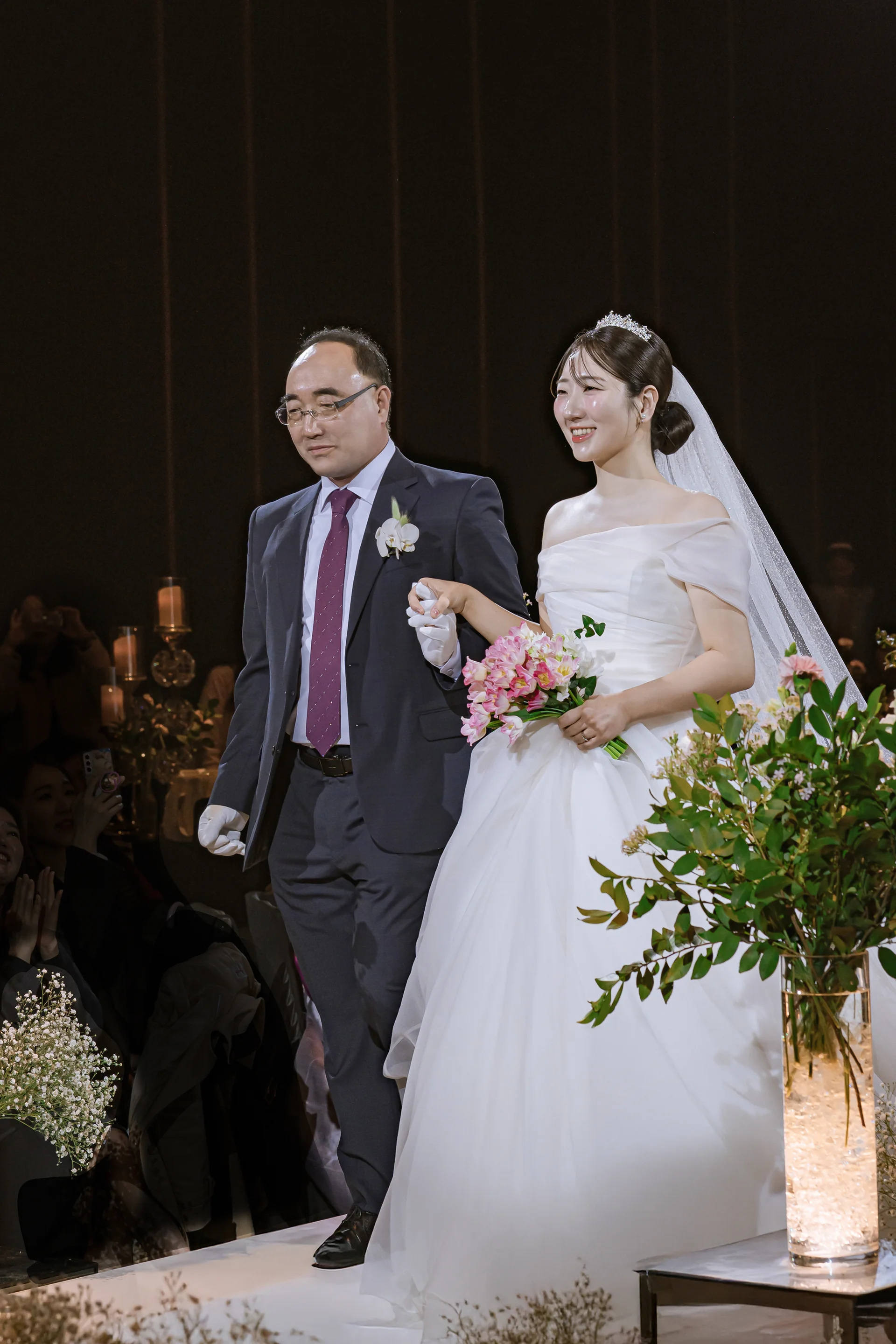 신부님께서도 아버님의 손을 잡고 환한 웃음을 보이며 입장 하셨어요🥹