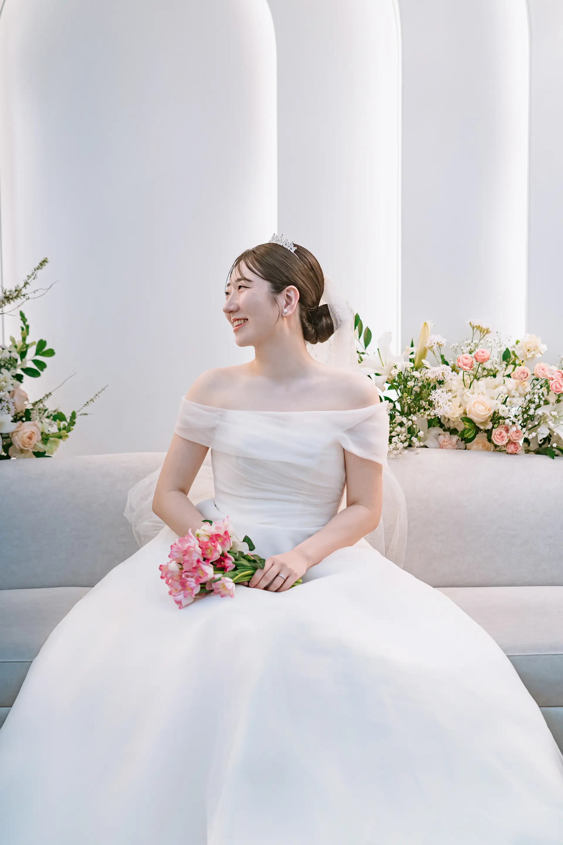 오프숄더 실크 드레스를 너무나 찰떡으로 소화하신 디어니스의 아름다운 신부님입니다🫶🏻
