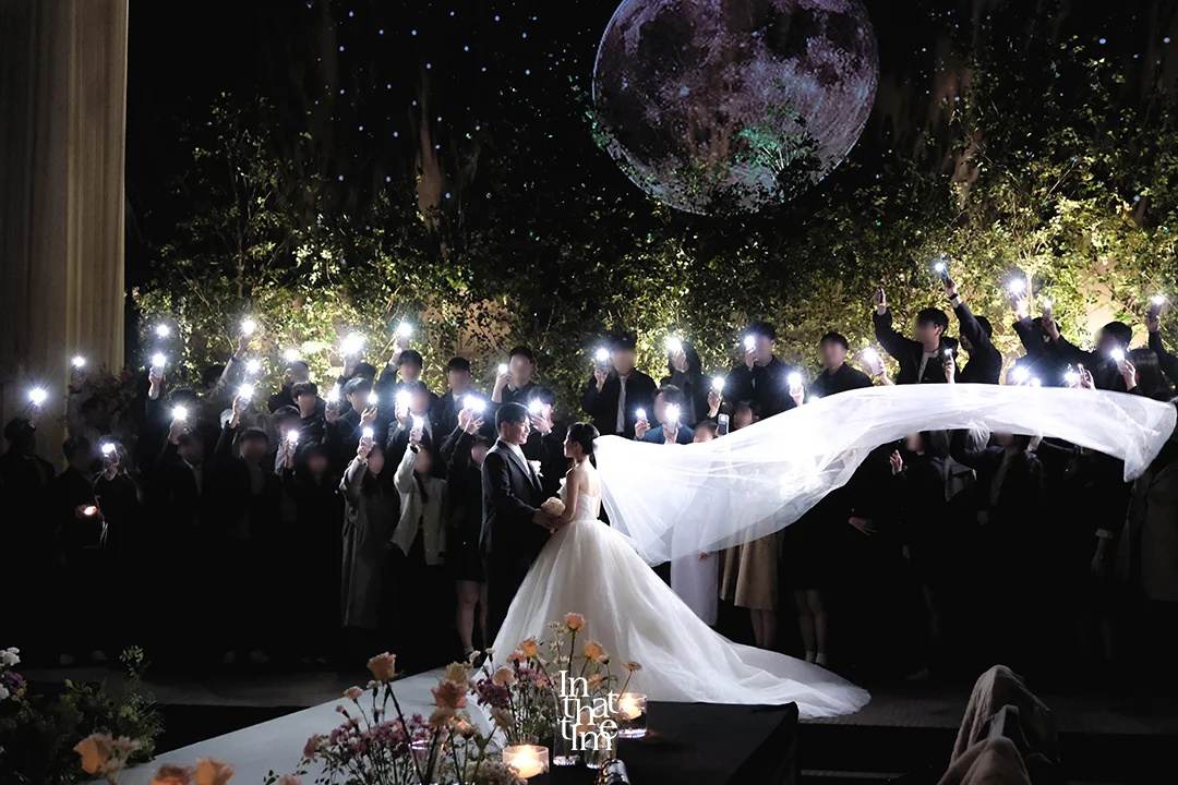 라비에벨의 상징인 '달 배경 반딧불이 컷'과 계단 연출, 플라워 샤워 장면 등 찰나의 타이밍이 중요한 순간들을 정교하게 포착합니다. 특히 어두운 홀의 조명 특성을 완벽히 파악하여, 아이폰 카메라로도 인물의 실루엣이 뭉개지지 않는 깔끔한 결과물을 약속드립니다.