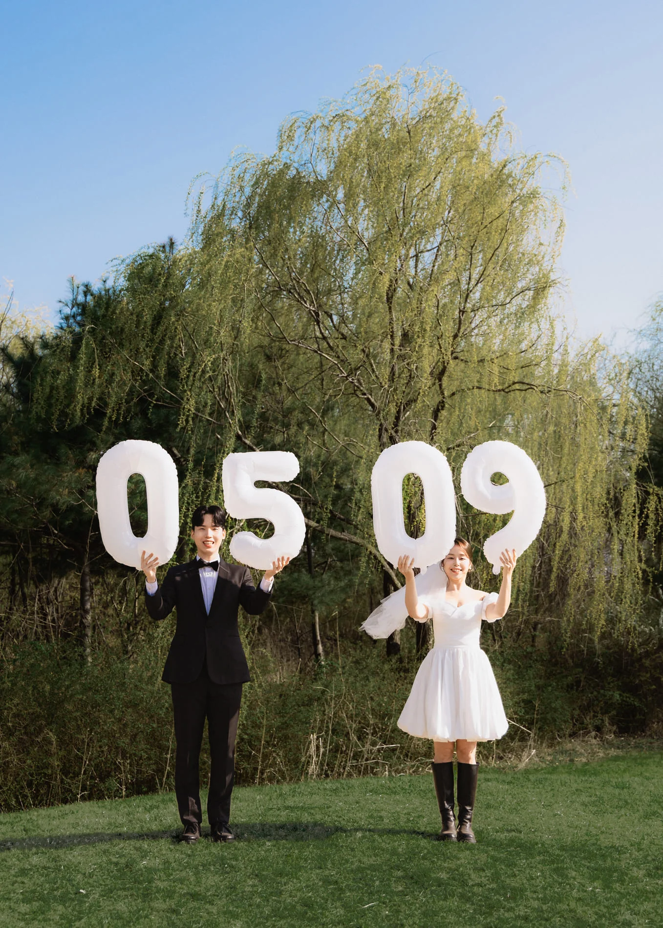 공간이 넓은 야외 촬영에서는 자칫 사진이 밋밋해질 수 있습니다. 마지아필름은 컨페티, 선글라스, 웨딩포스터, 풍선 등 간단하지만 효과적인 소품들을 배치하여 사진에 활력을 불어넣습니다. 이러한 작은 디테일의 차이가 전체 앨범의 퀄리티를 결정짓는 중요한 요소가 됩니다.