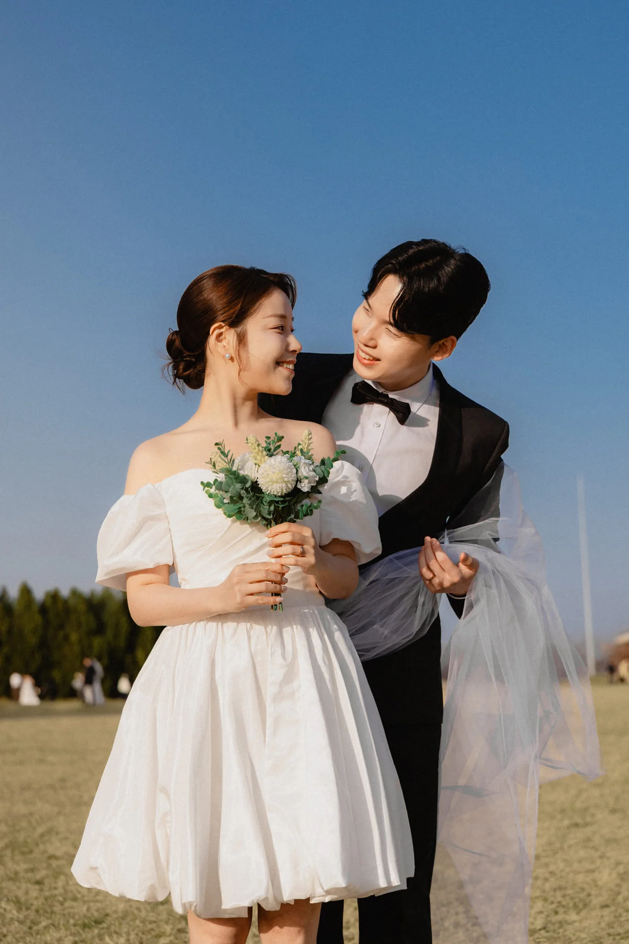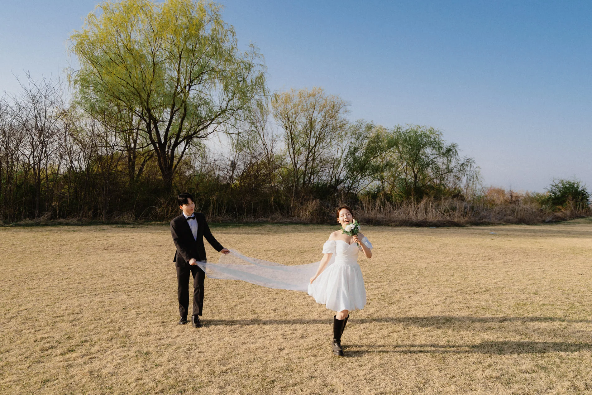 노을공원의 가장 큰 매력은 높은 하늘과 넓게 펼쳐진 잔디밭입니다. 마지아필름은 인위적인 구조물 대신 대자연의 여백을 프레임에 활용하여, 두 사람의 실루엣과 감정선이 더욱 돋보이는 구도를 선점했습니다. 이러한 개방감은 커플스냅과 웨딩스냅 모두를 만족시키는 훌륭한 배경이 됩니다.