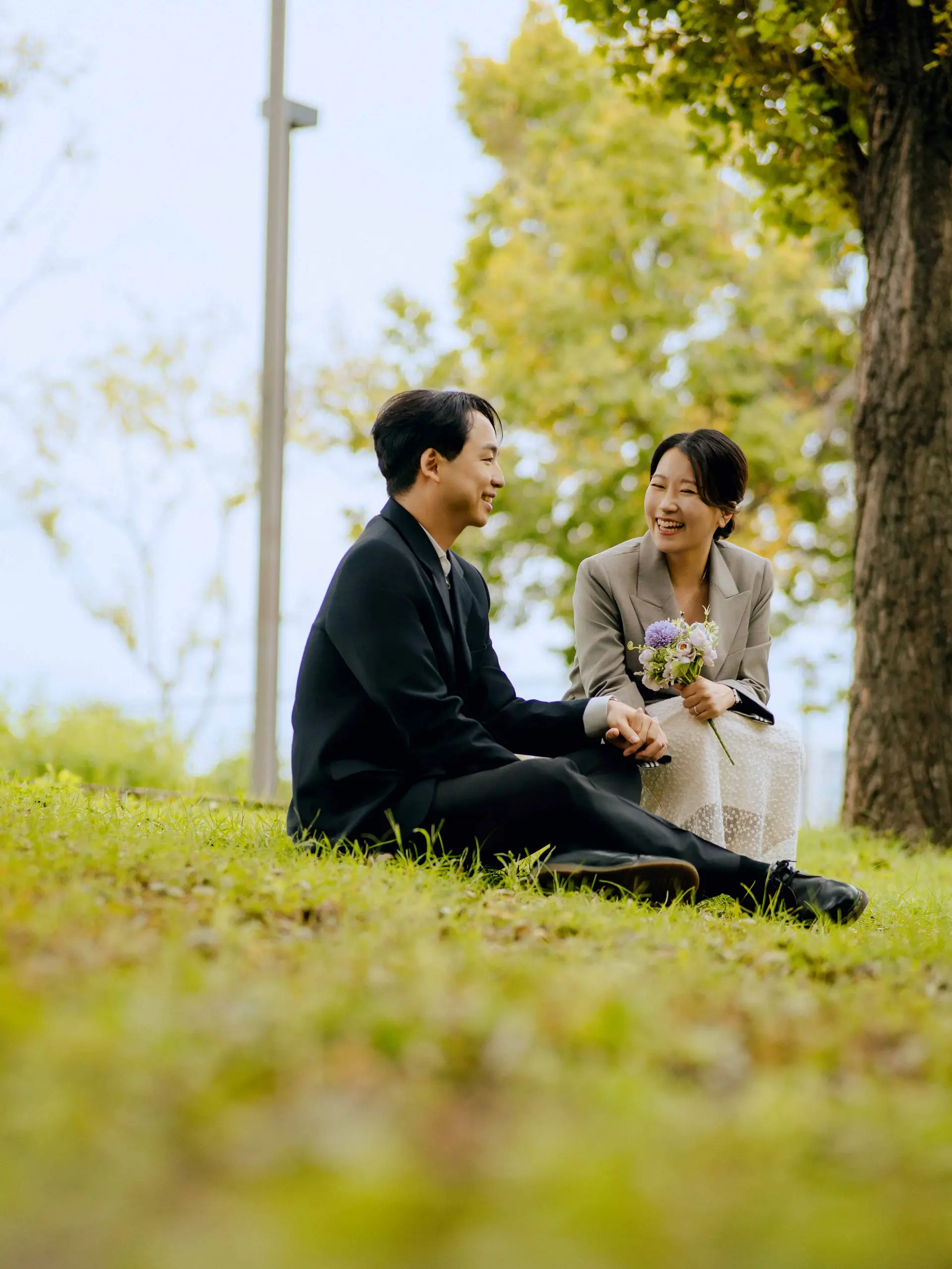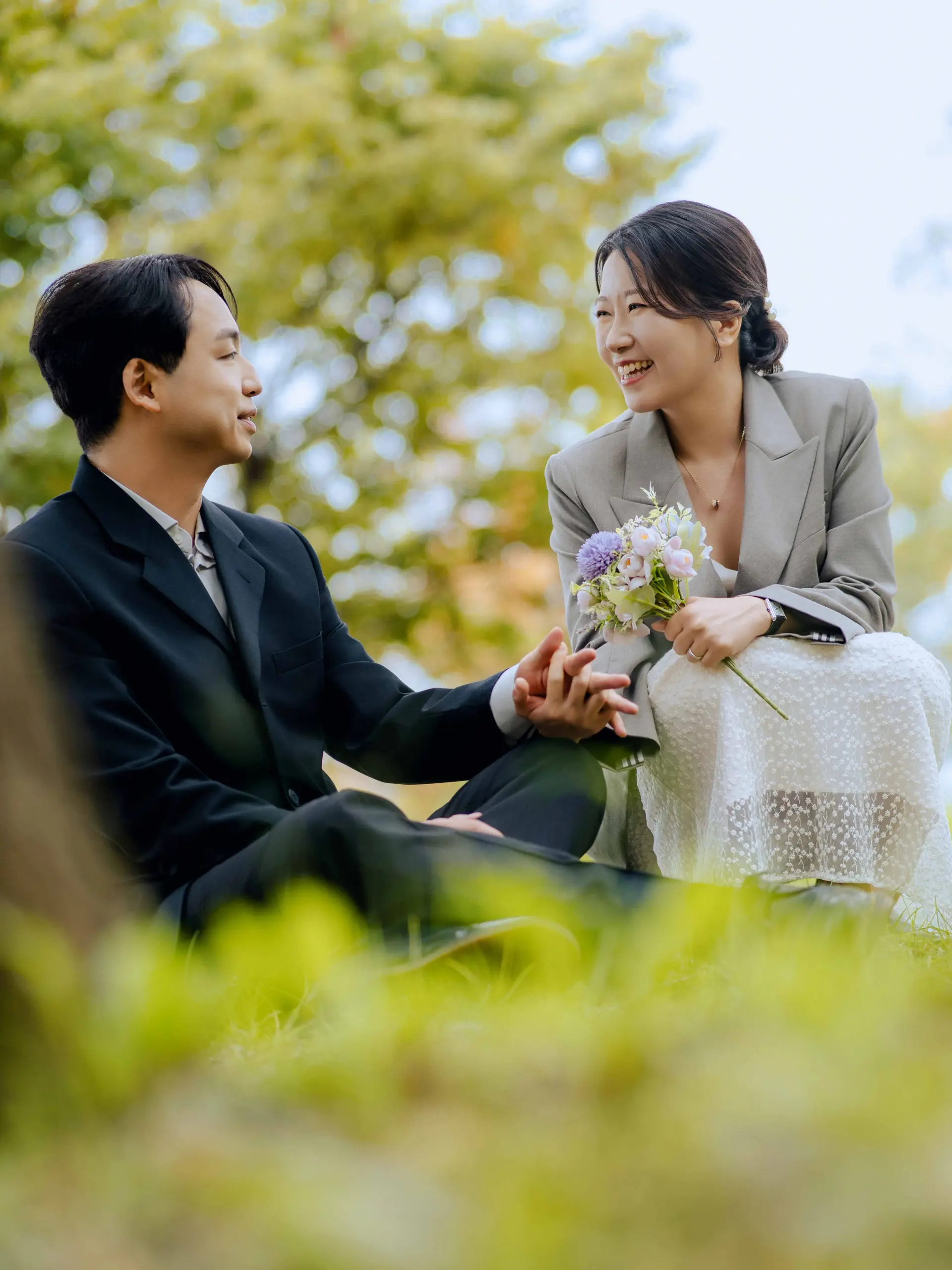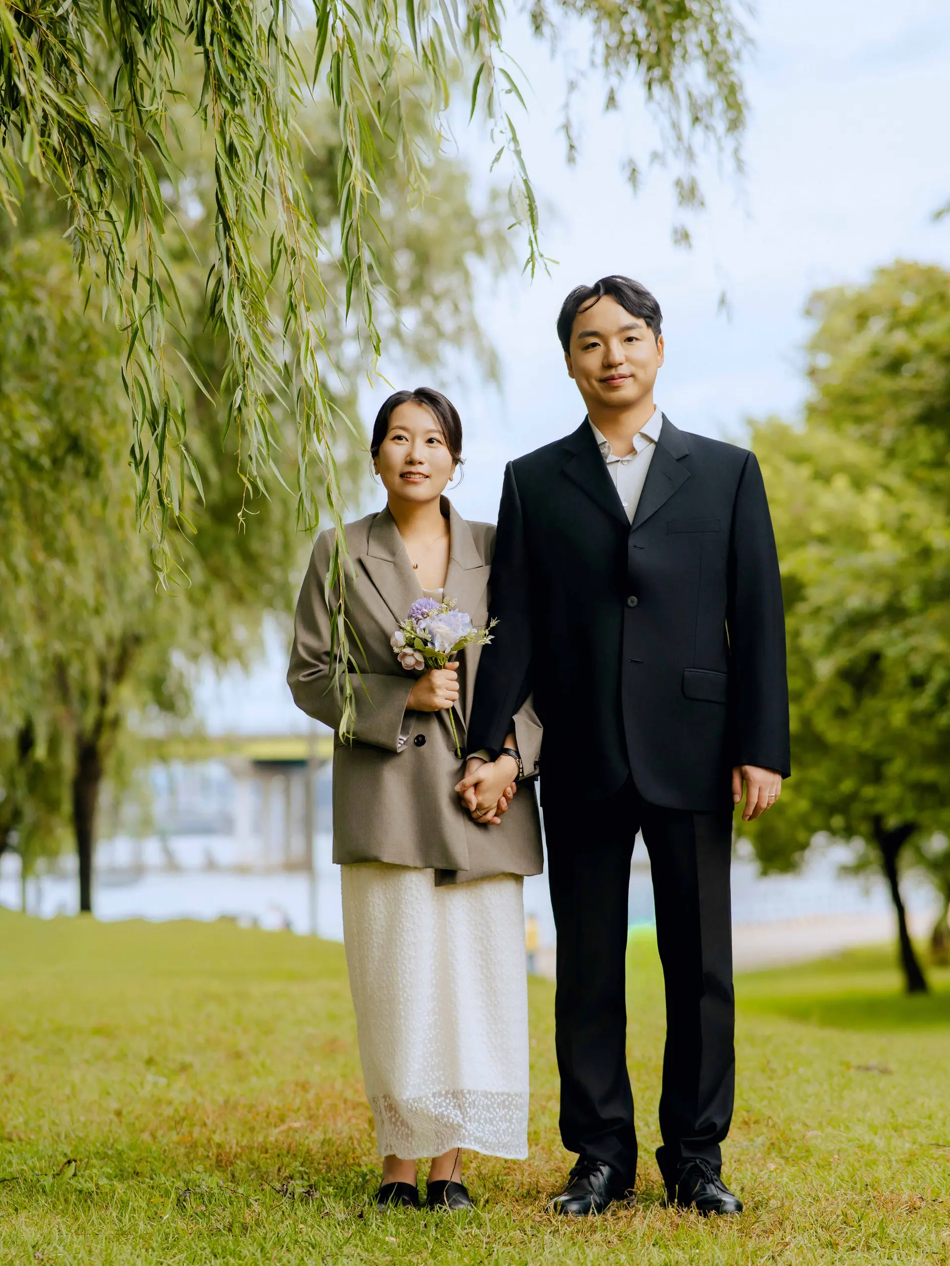 “양화한강공원은 예전에 데이트하던 장소였는데, 웨딩스냅으로 다시 찾으니 느낌이 너무 새롭고 특별했어요. 사진도 진짜 예쁘게 나와서 셀프웨딩 느낌이 제대로 났어요. 무엇보다 작가님이 친절하게 리드해주시고 소품도 디테일하게 챙겨주셔서 편하게 촬영했어요!”