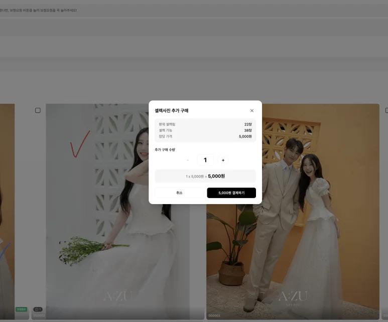 필름커넥트의 가장 큰 강점은 '통합 관리'입니다. 별도의 사이트를 전전할 필요 없이, 필름커넥트 전용 셀렉 툴을 통해 사진 선택, 보정 요청, 추가 컷 선택을 한 번에 진행할 수 있습니다.