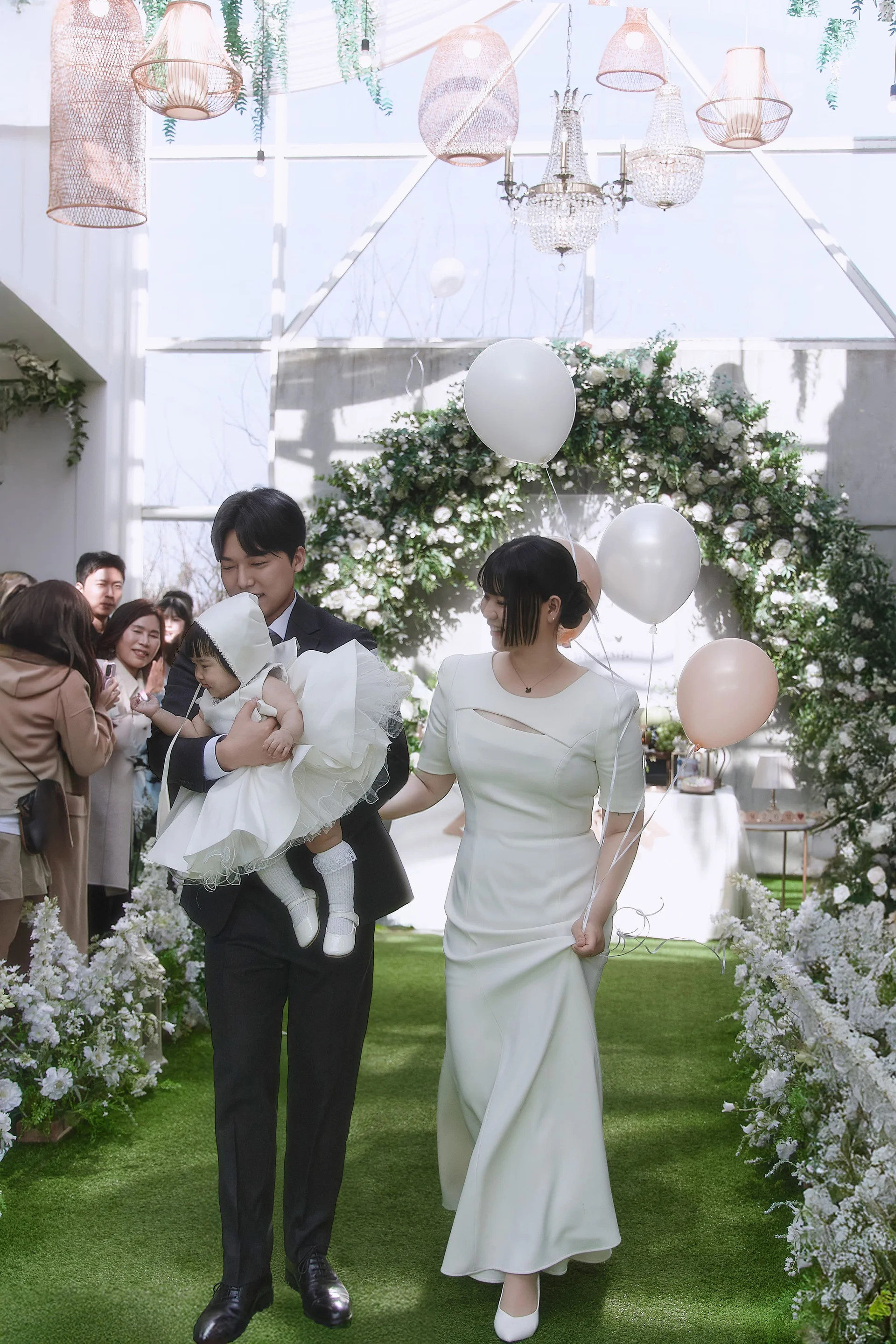 셀레네 웨딩의 시그니처인 '천장 개방 풍선 이벤트'는 매우 아름답지만 촬영 난이도가 높은 순간입니다. 직사광선이 인물에 바로 떨어지는 상황에서도 소람스튜디오는 적절한 노출 보정과 조명 활용을 통해, 현장의 감동은 그대로 살리면서 인물의 표정은 선명하게 담아냅니다.