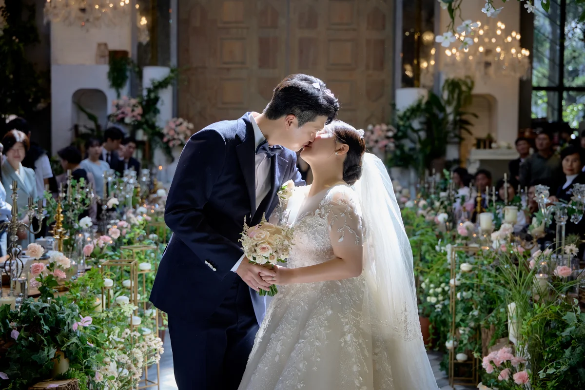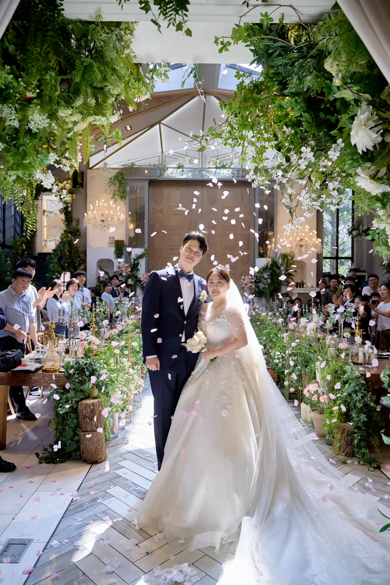 식사와 예식이 동시에 진행될 때 하객들이 1층과 2층으로 자연스럽게 분산되도록 유도하세요. 공간이 한결 여유로워지면 사진 속 배경도 훨씬 정돈되어 보이며, 신랑신부님이 하객들과 눈을 맞추며 인사하는 장면들이 더욱 아름답게 담길 수 있습니다.