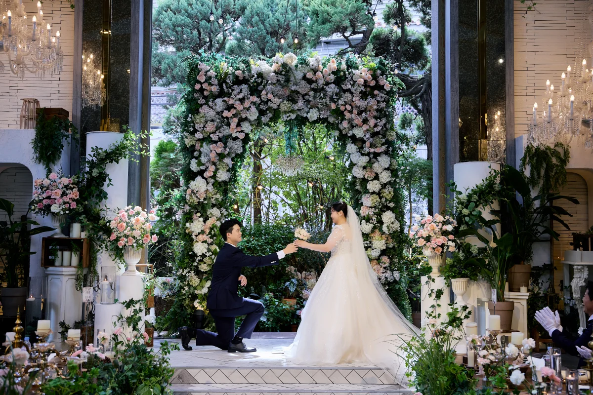 이곳의 가장 큰 매력은 천장과 창을 통해 들어오는 자연광입니다. 햇살이 가득 채워지는 낮 시간대 예식은 별도의 후보정 없이도 투명하고 깨끗한 색감을 만들어내죠. 디어데이스냅은 빛의 방향을 정교하게 읽어내어, 역광 상황에서도 인물의 실루엣이 뭉개지지 않는 맑은 본식 스냅을 약속드립니다.