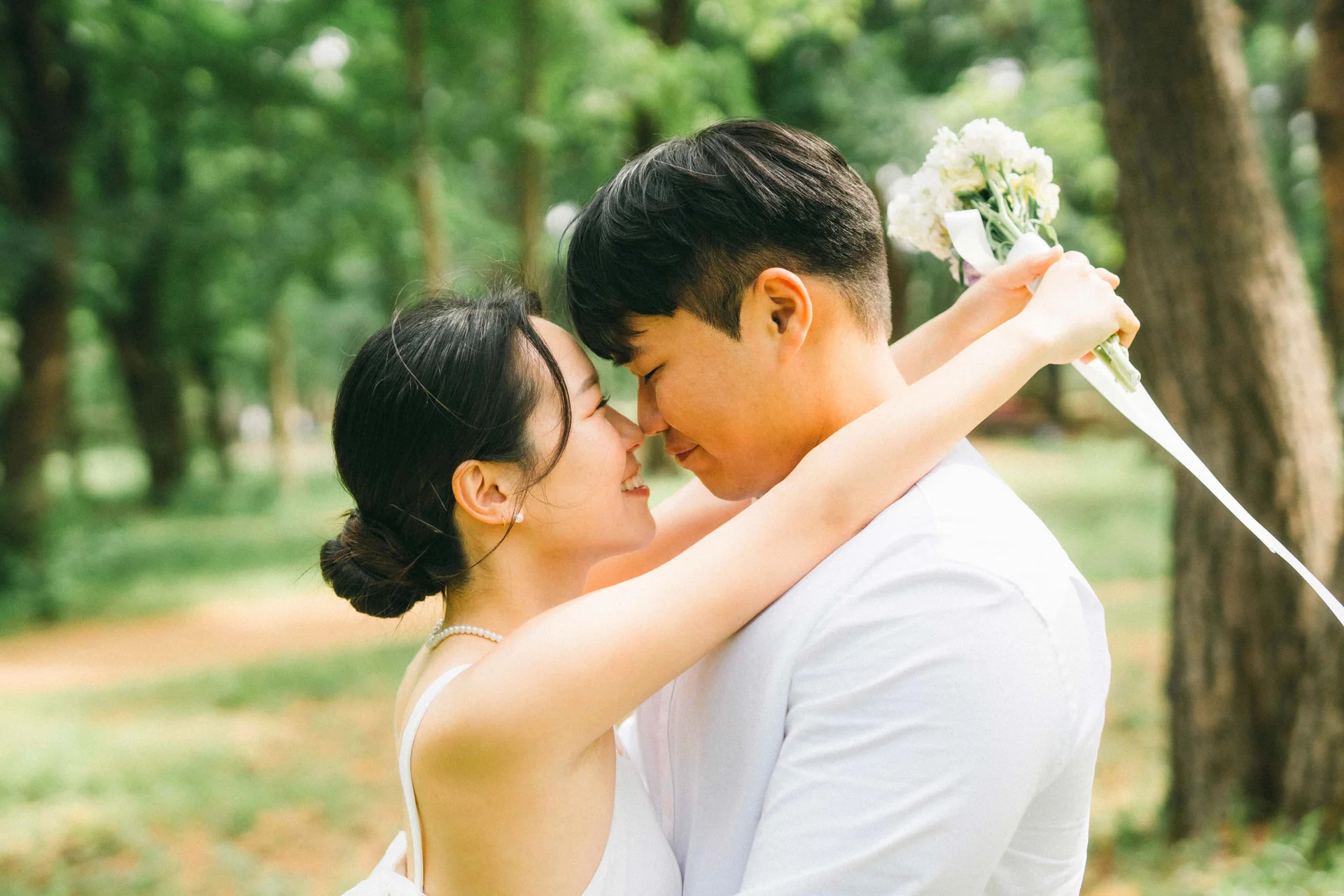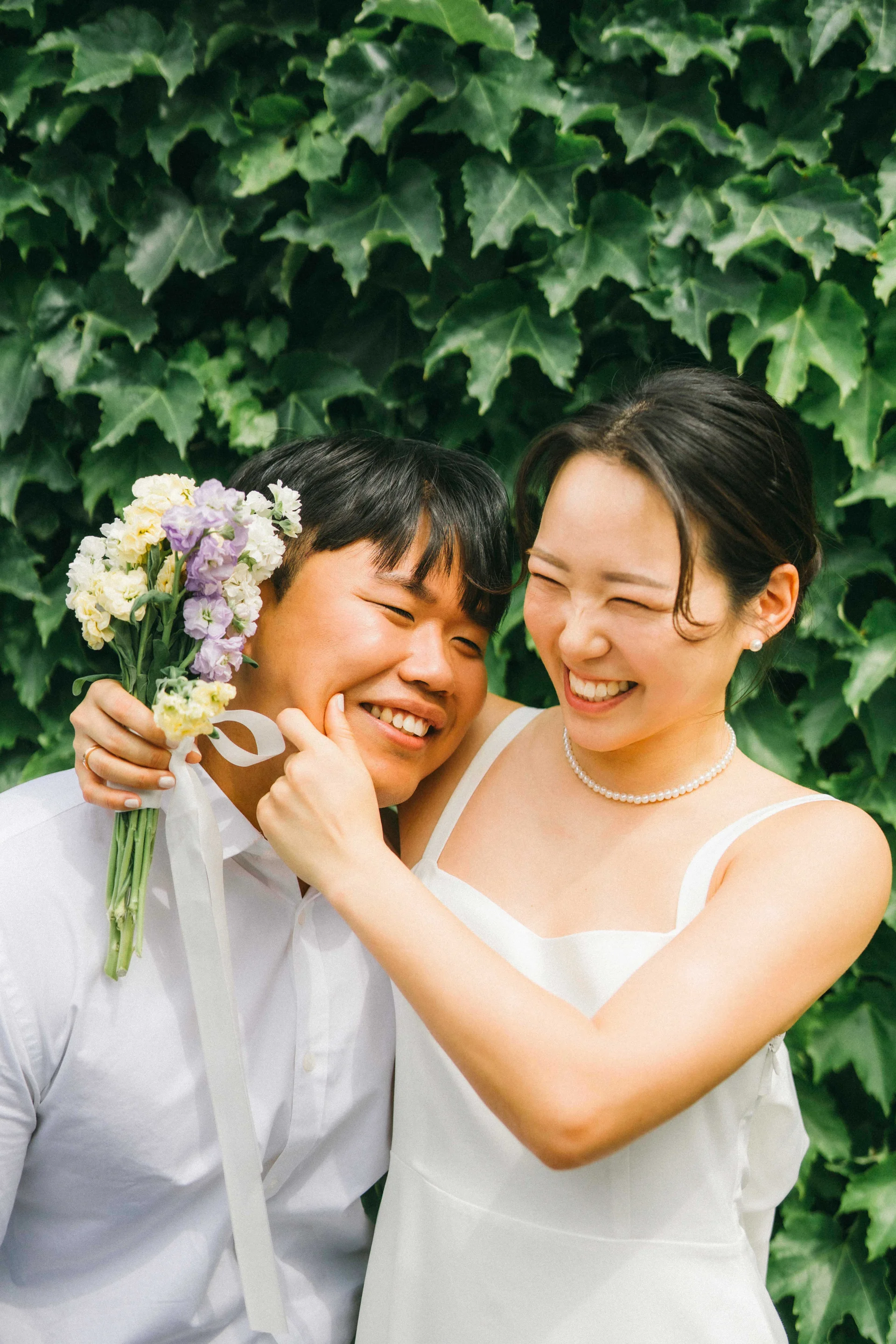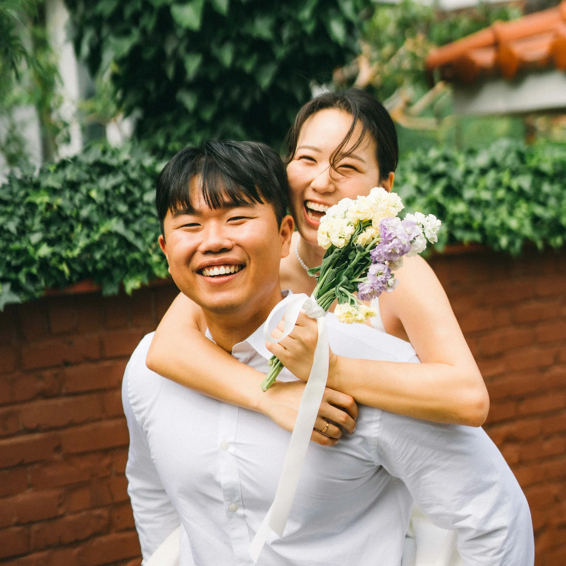 "골목에서 웨딩 사진을 찍는다는 게 처음엔 생소했는데, 결과물을 보니 너무 귀엽고 저희다운 모습이 담겨서 대만족이에요! 공원에서의 숲속 컷들도 마치 외국에서 찍은 것처럼 분위기 있게 나와서 친구들이 다들 어디서 찍었냐고 물어보네요. 후안 작가님 덕분에 촬영 내내 정말 즐거웠습니다!"