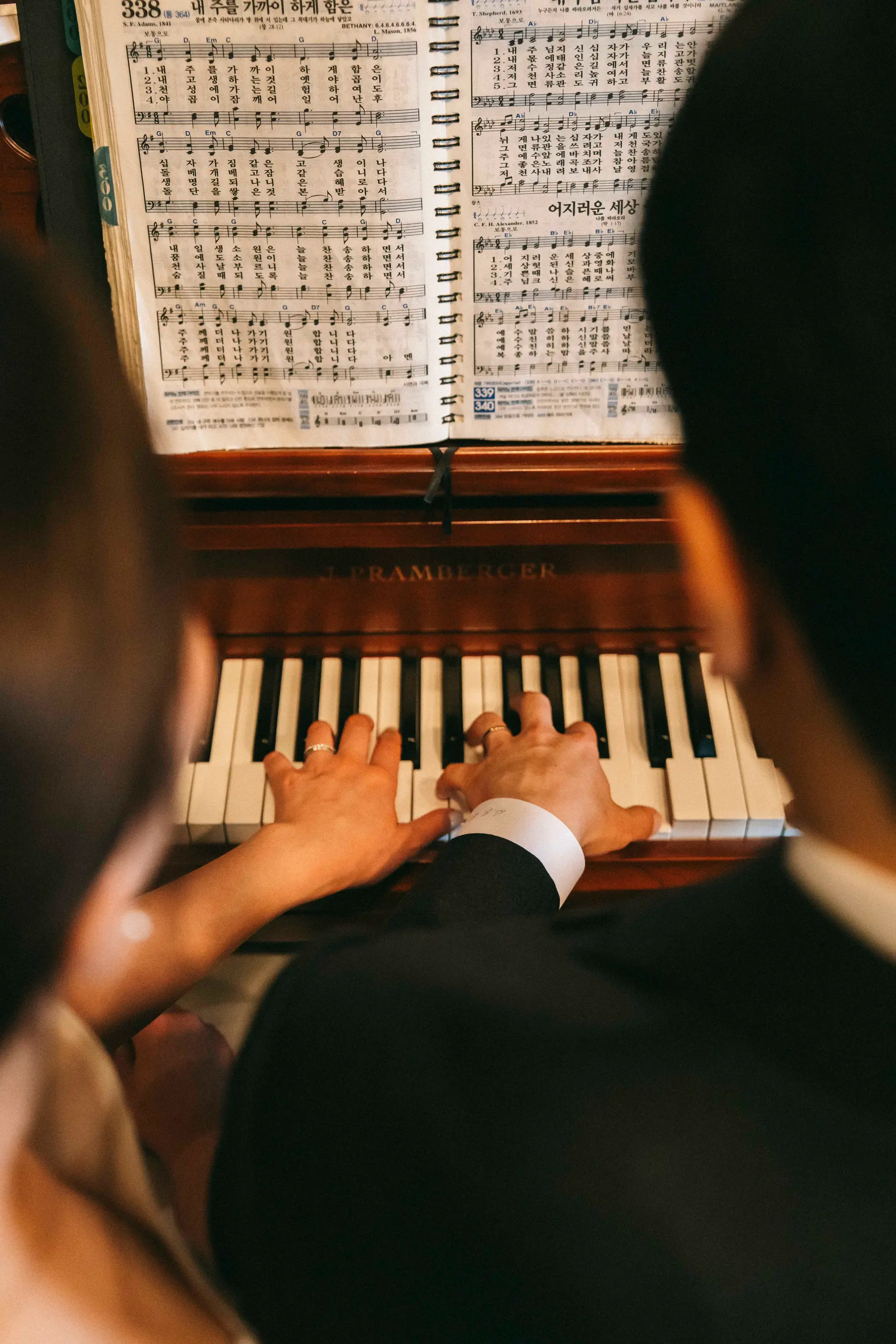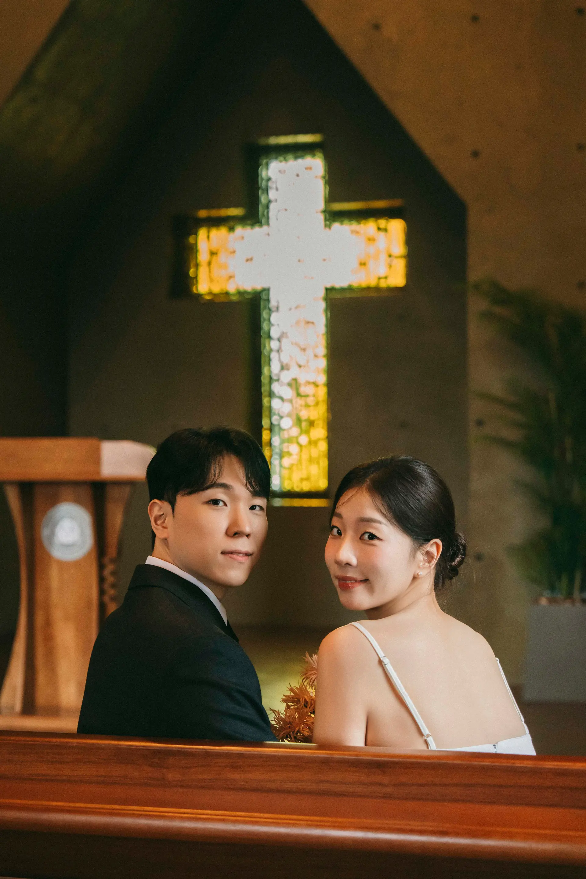 오르간 컷: 교회 내부 오르간을 활용하여 나란히 앉아 연주하는 듯한 귀엽고 캐주얼한 컨셉 컷도 완성할 수 있습니다.