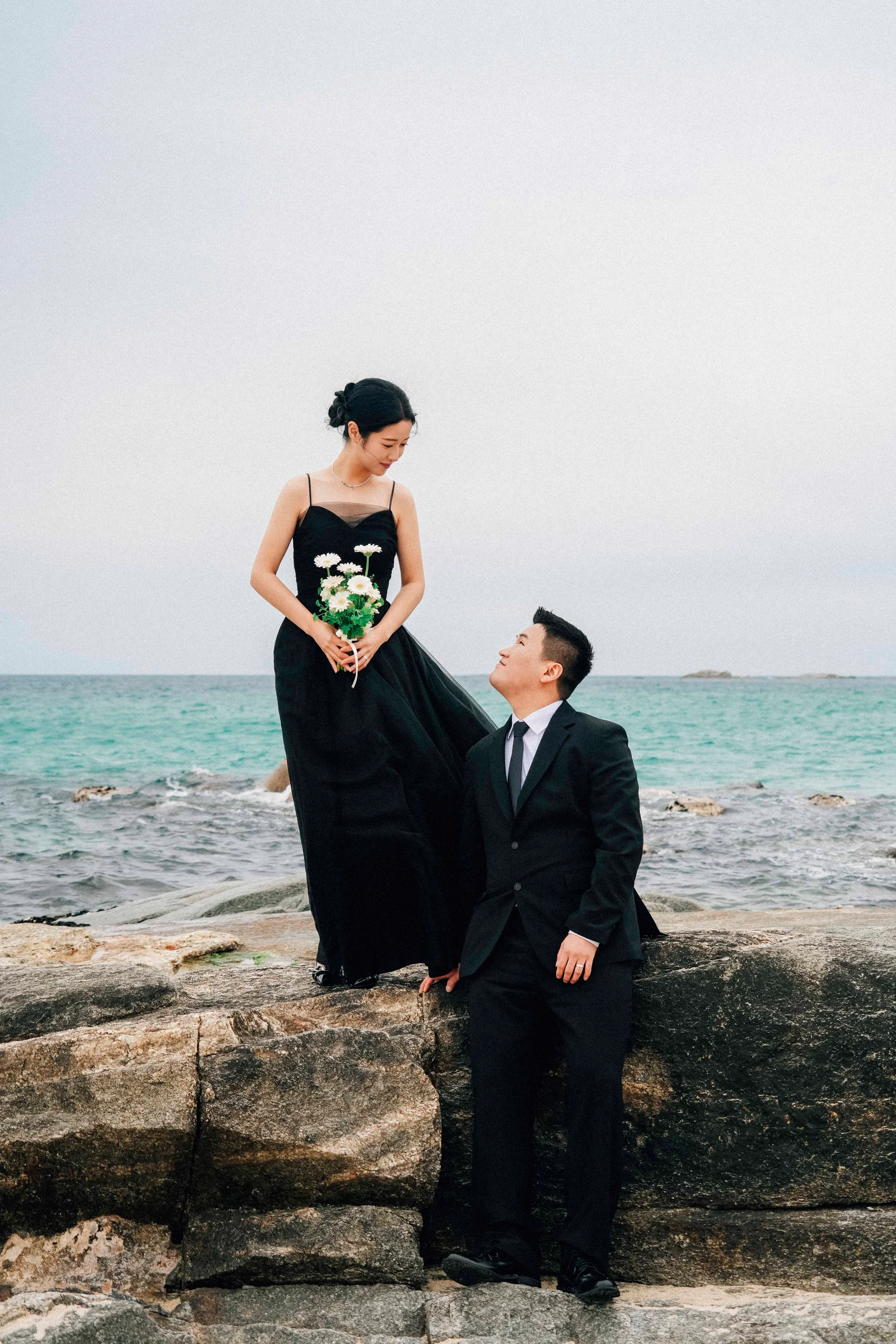 • 시네마틱 연출: 해변에서 장난치며 뛰노는 모습, 그리고 신랑님이 신부님을 번쩍 안아 드는 '공주 안기' 컷은 사근진의 푸른 바다와 만나 화보 같은 생동감을 자아냅니다. 전망대 위에서 내려다보는 드론 샷 구도는 반드시 남겨야 할 필수 코스입니다.