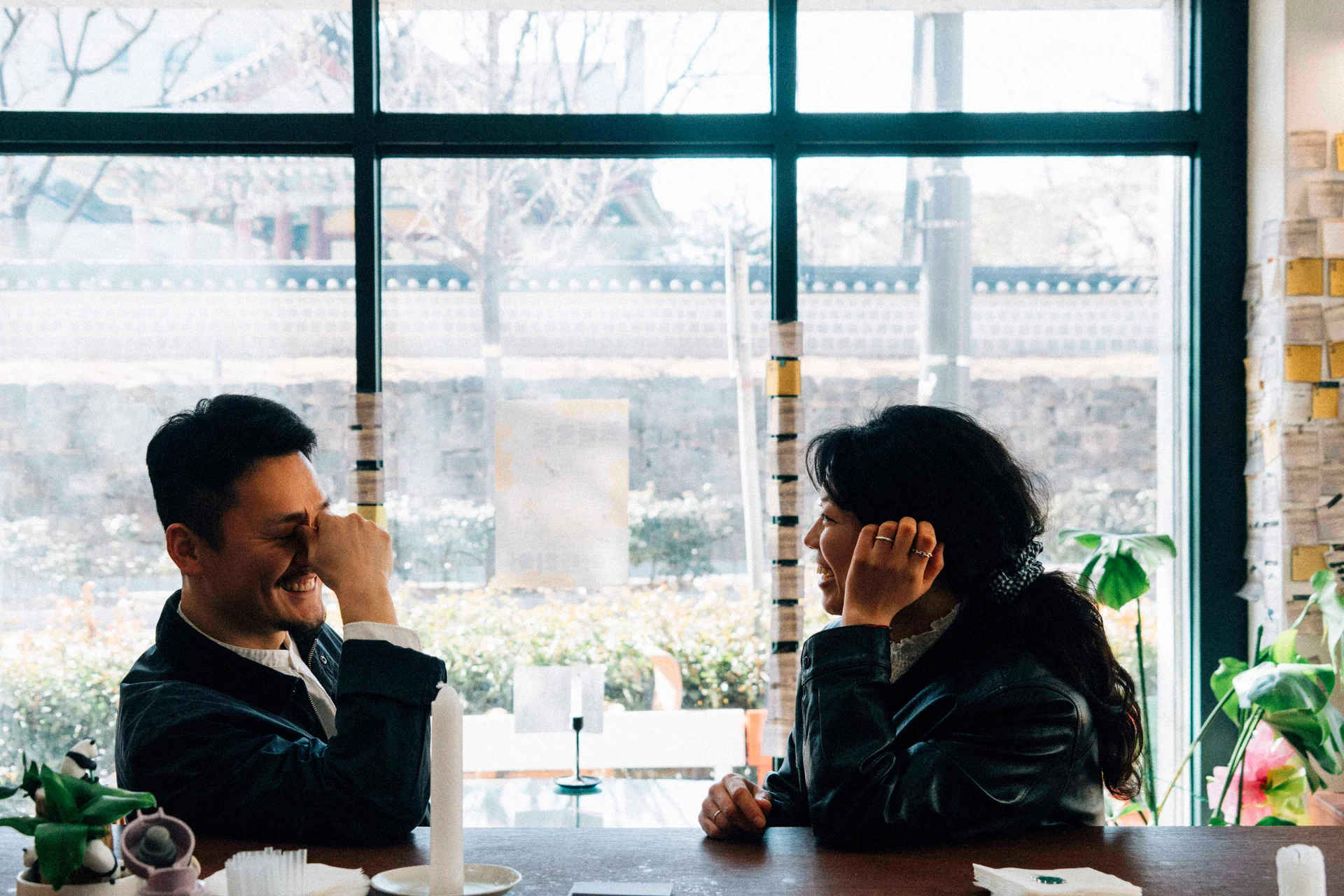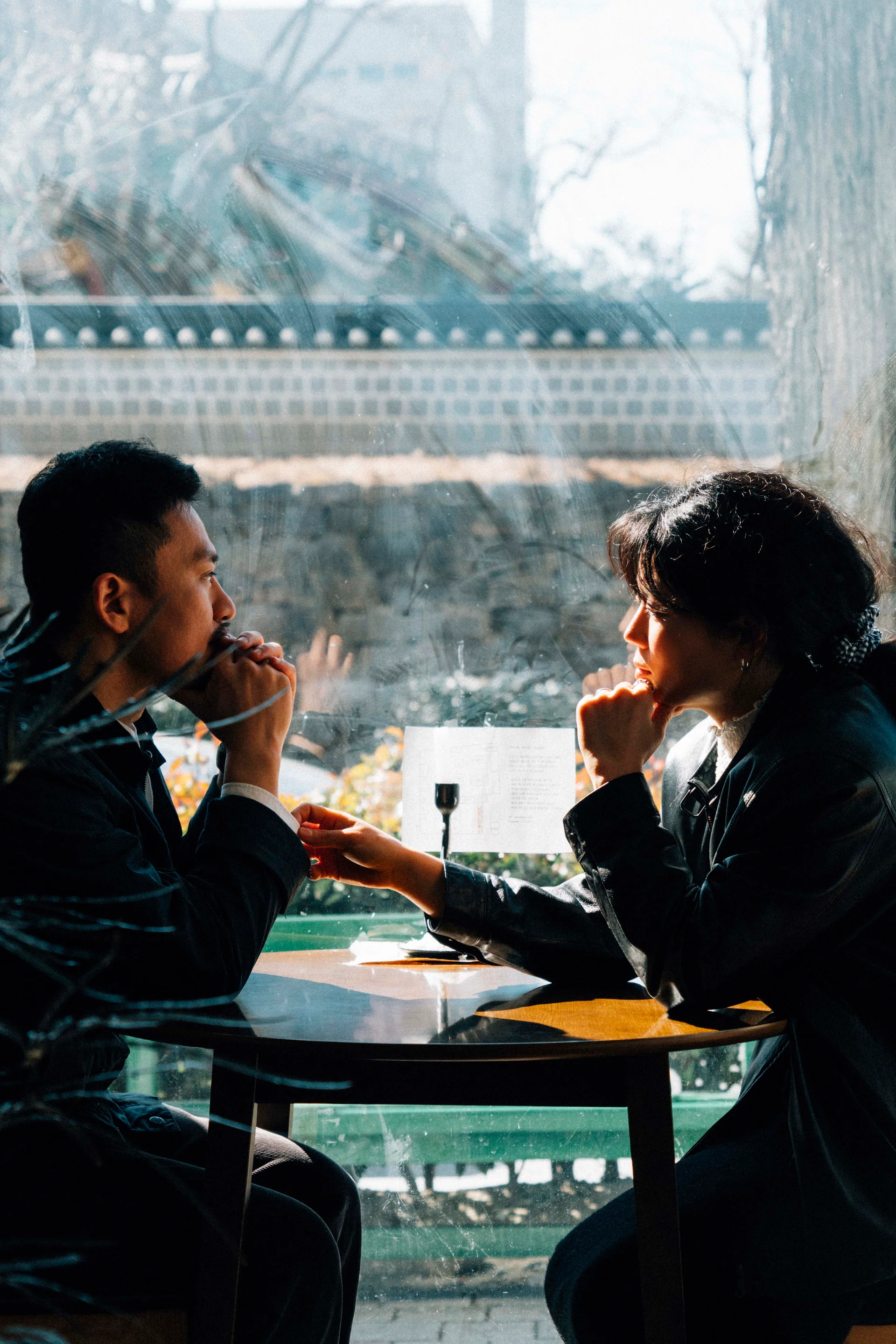 자연스러운 조화: 인위적인 조명 세팅보다는 창가로 들어오는 자연광과 실내의 조명 무드를 있는 그대로 활용하여, 그 공간에 머무는 두 사람의 모습을 가장 이질감 없이 담아냅니다.