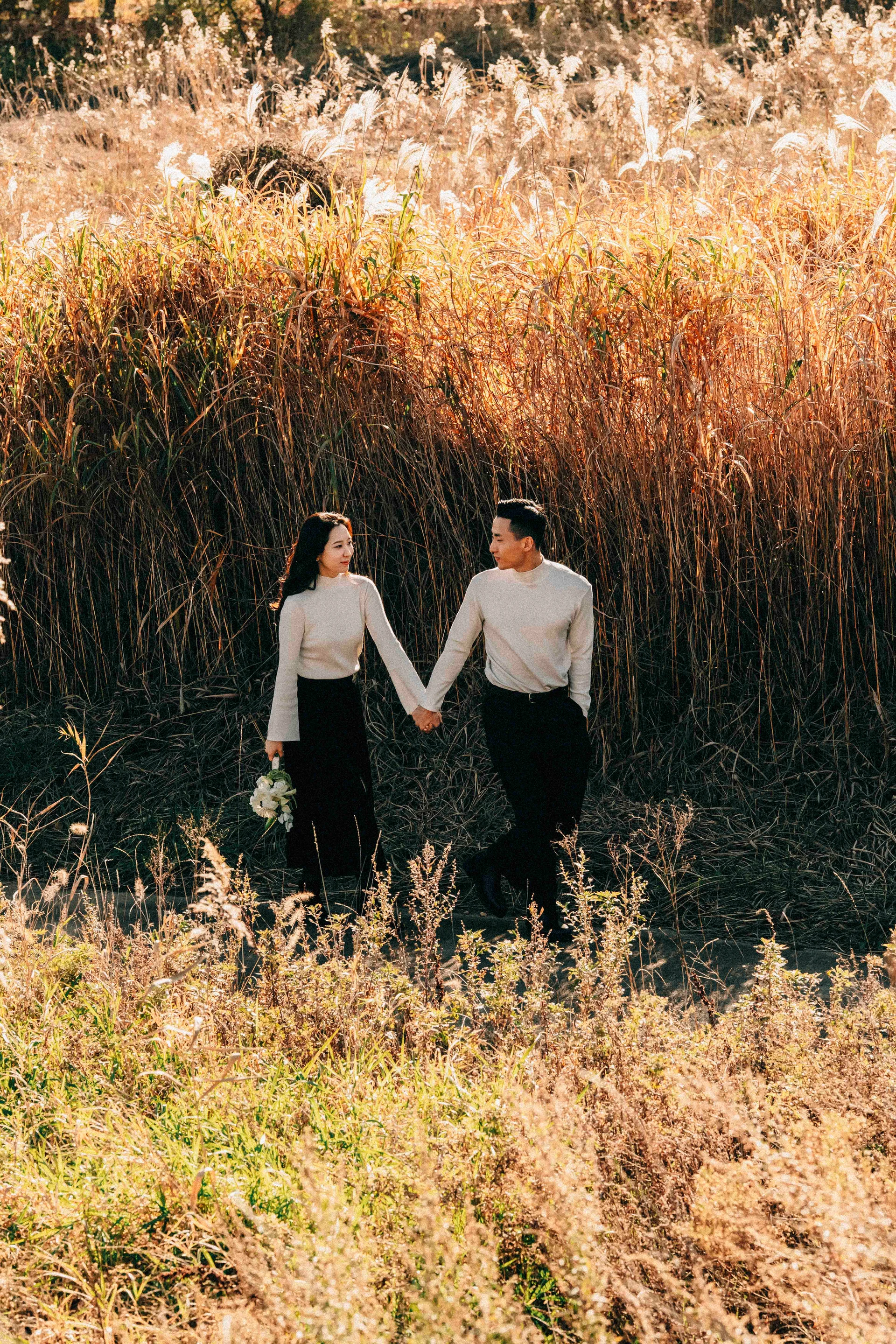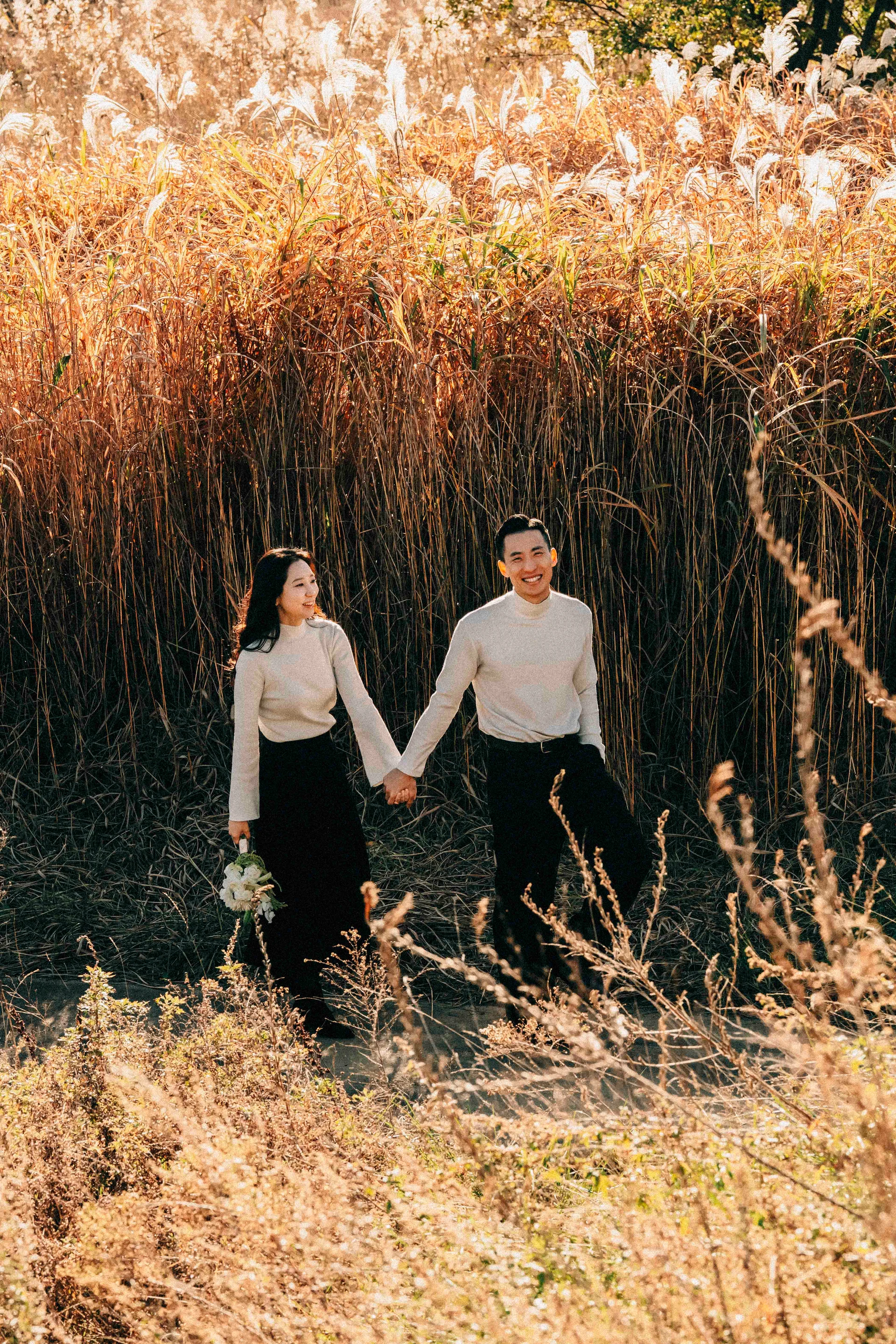 베이지 톤의 갈대는 햇빛을 받을수록 더욱 따뜻한 색감을 보여줍니다. 별다른 연출 없이 두 분이 손을 맞잡고 걷기만 해도 한 폭의 그림 같은 장면이 완성됩니다.