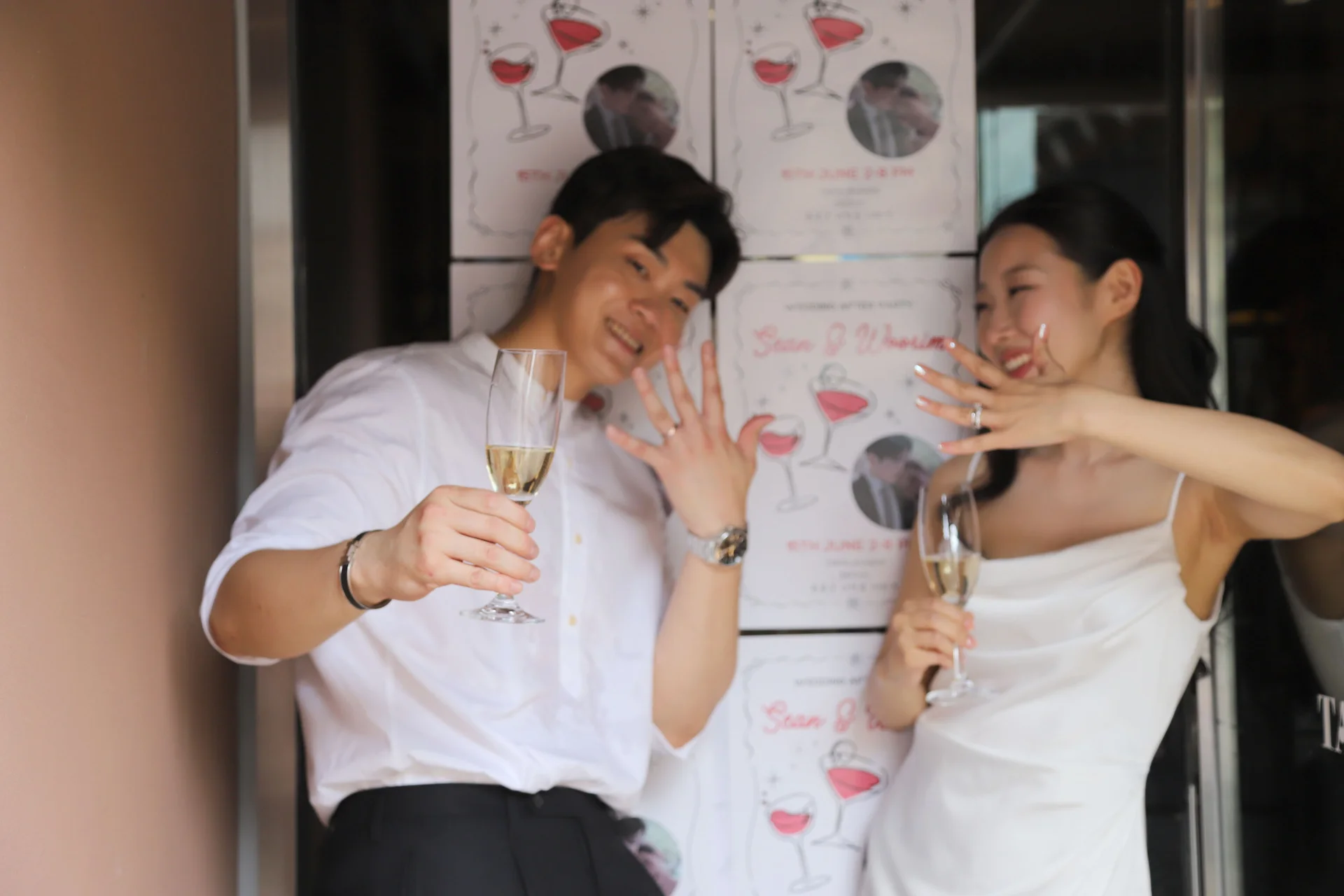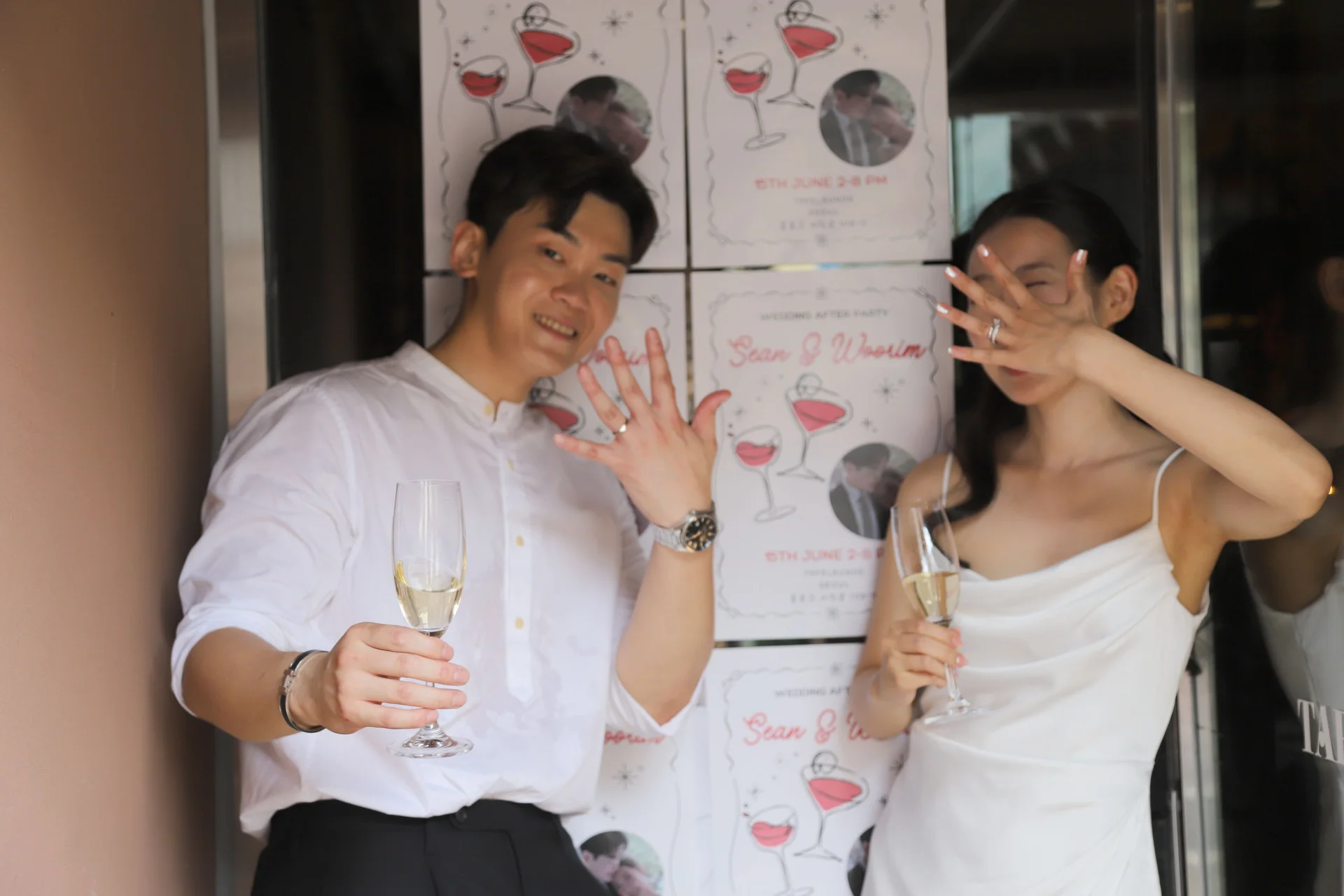 • DSLR의 역할: 어두운 와인바 조도 아래에서도 노이즈 없이 인물의 표정과 의상의 질감을 선명하고 고급스럽게 잡아냅니다. 특히 입구 포스터 앞에서의 단독 컷은 신부님의 프로필 사진이 될 만큼 완벽한 퀄리티를 자랑했습니다.
