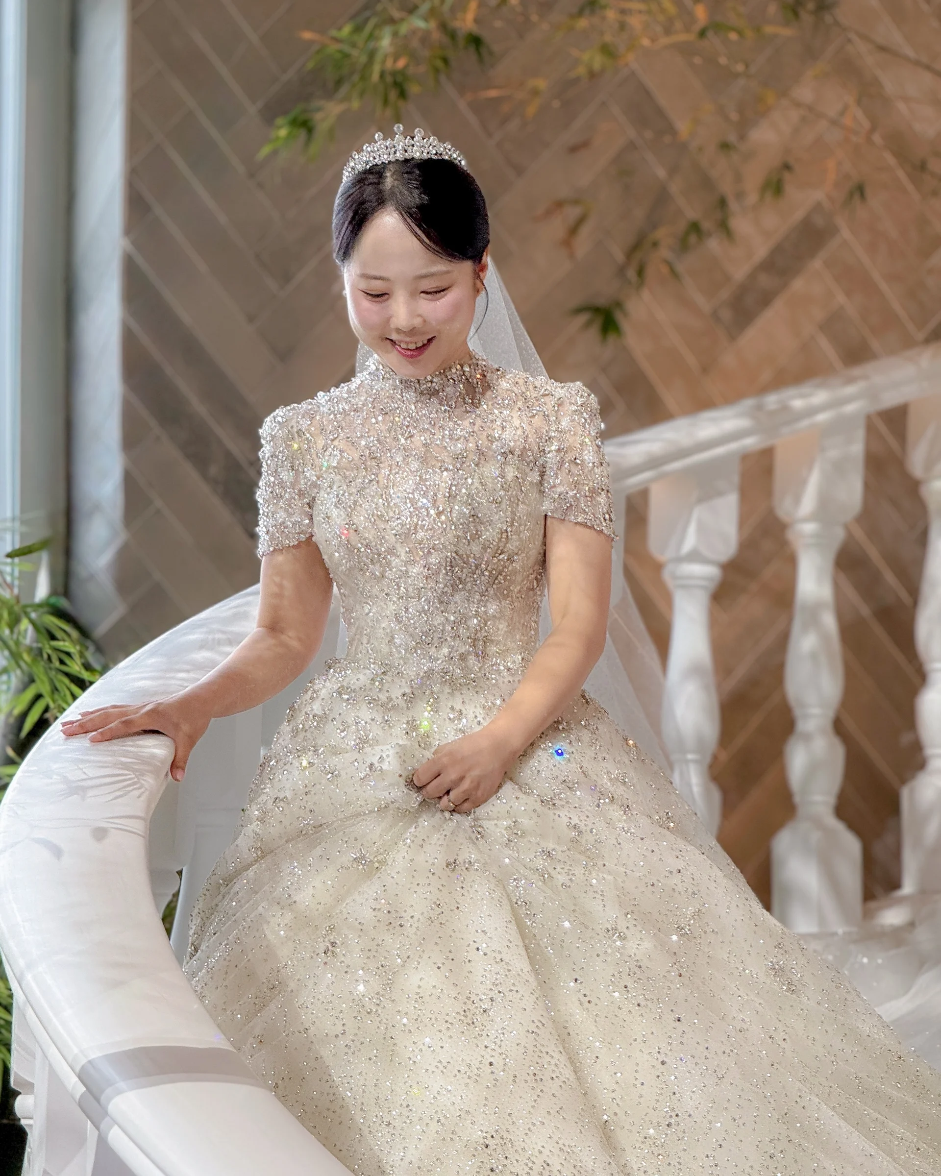 로비보다 반층 높은 구조로 설계되어 있어, 곡선형 계단을 따라 내려가는 우아한 입장씬을 담을 수 있습니다. 자연광이 풍부하게 들어오는 밝은 공간이라 아이폰 특유의 생동감 넘치는 색감과 찰떡궁합을 자랑합니다.