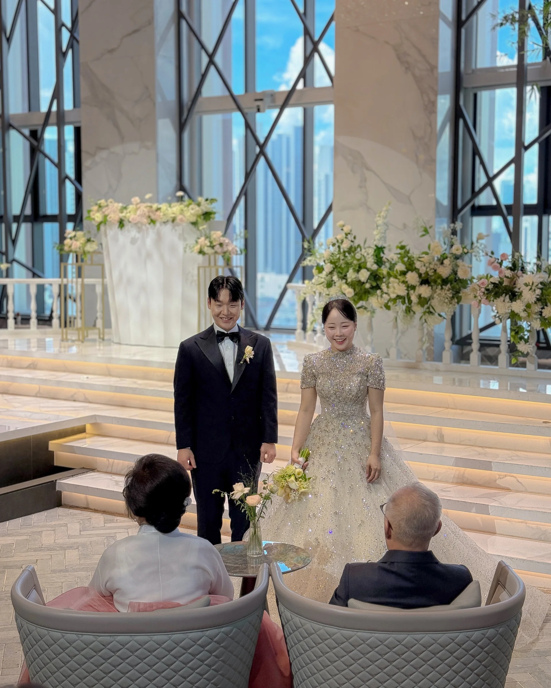 • 공간 구성: 고급 대리석 마감과 화이트 톤 인테리어로 은은한 우아함이 돋보입니다.