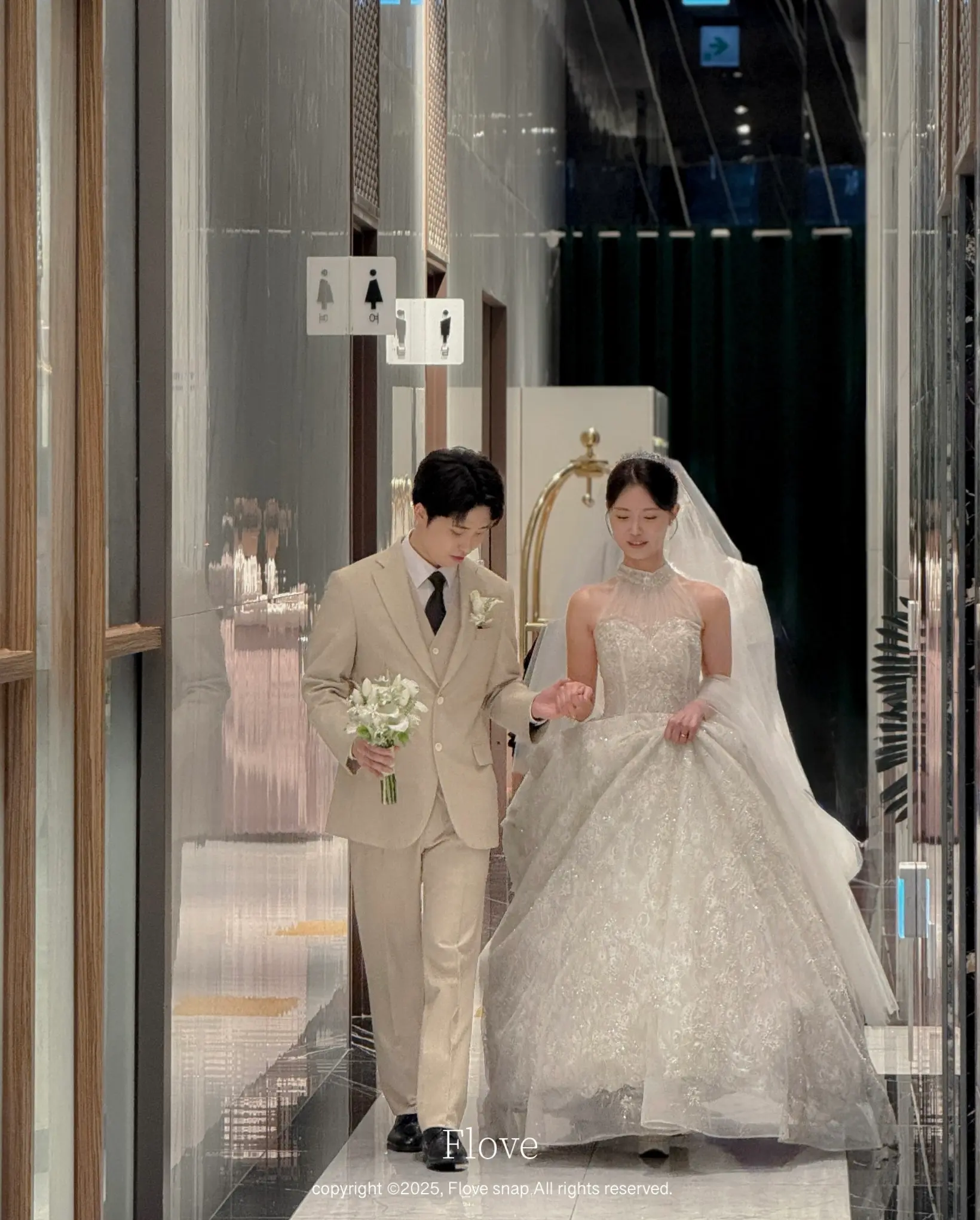 단독홀 특유의 여유로움을 활용해 로비와 복도에서도 감각적인 연출 컷을 진행했습니다. 하객 맞이 전의 설렘과 정적인 분위기를 아이폰만의 따뜻한 질감으로 담아냈습니다.