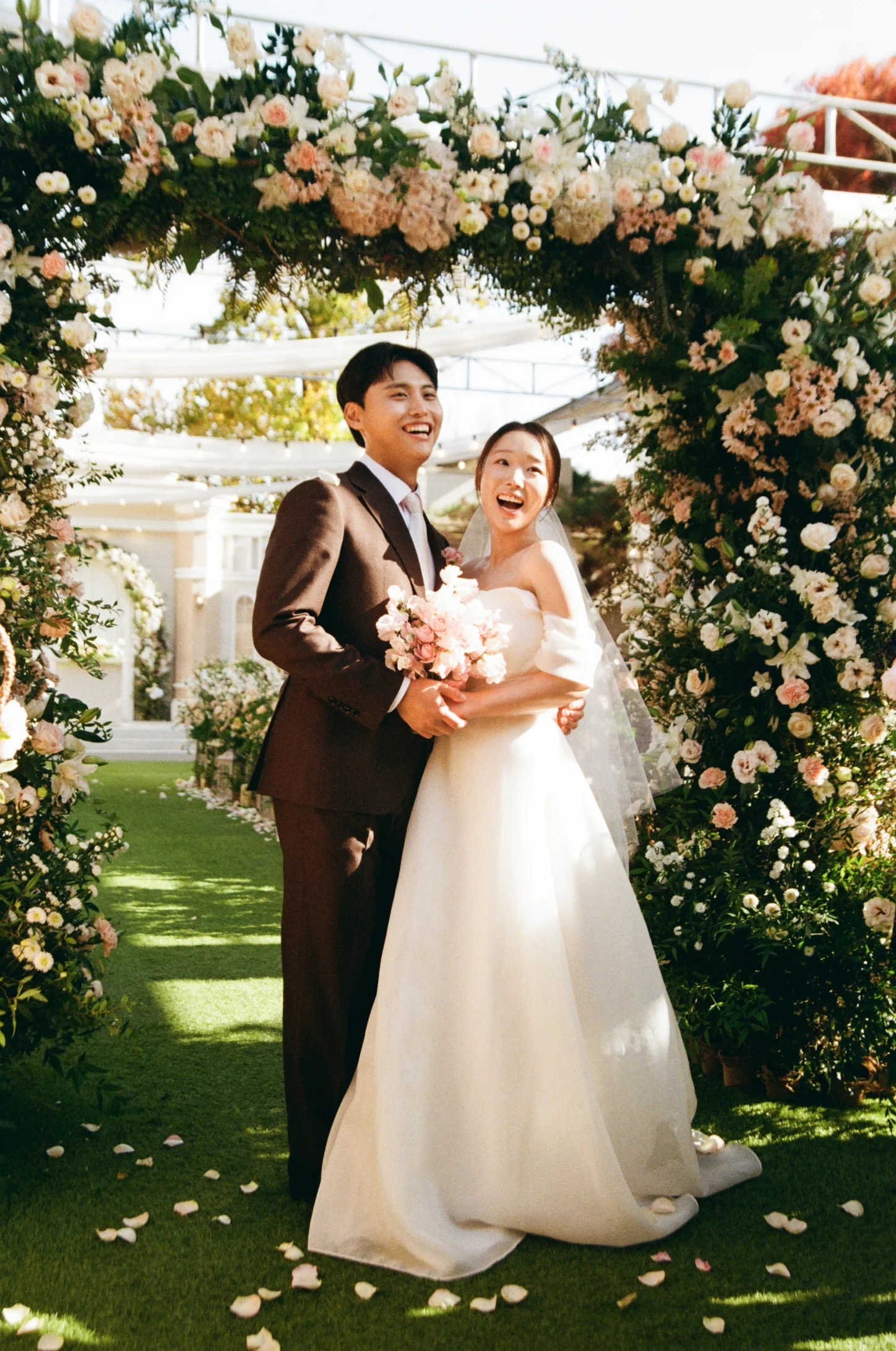 압도적인 생동감: 푸른 하늘이 천장이 되고, 버진로드를 가득 채운 꽃들이 배경이 되는 이곳은 셔터를 누르는 모든 순간이 화보가 됩니다.