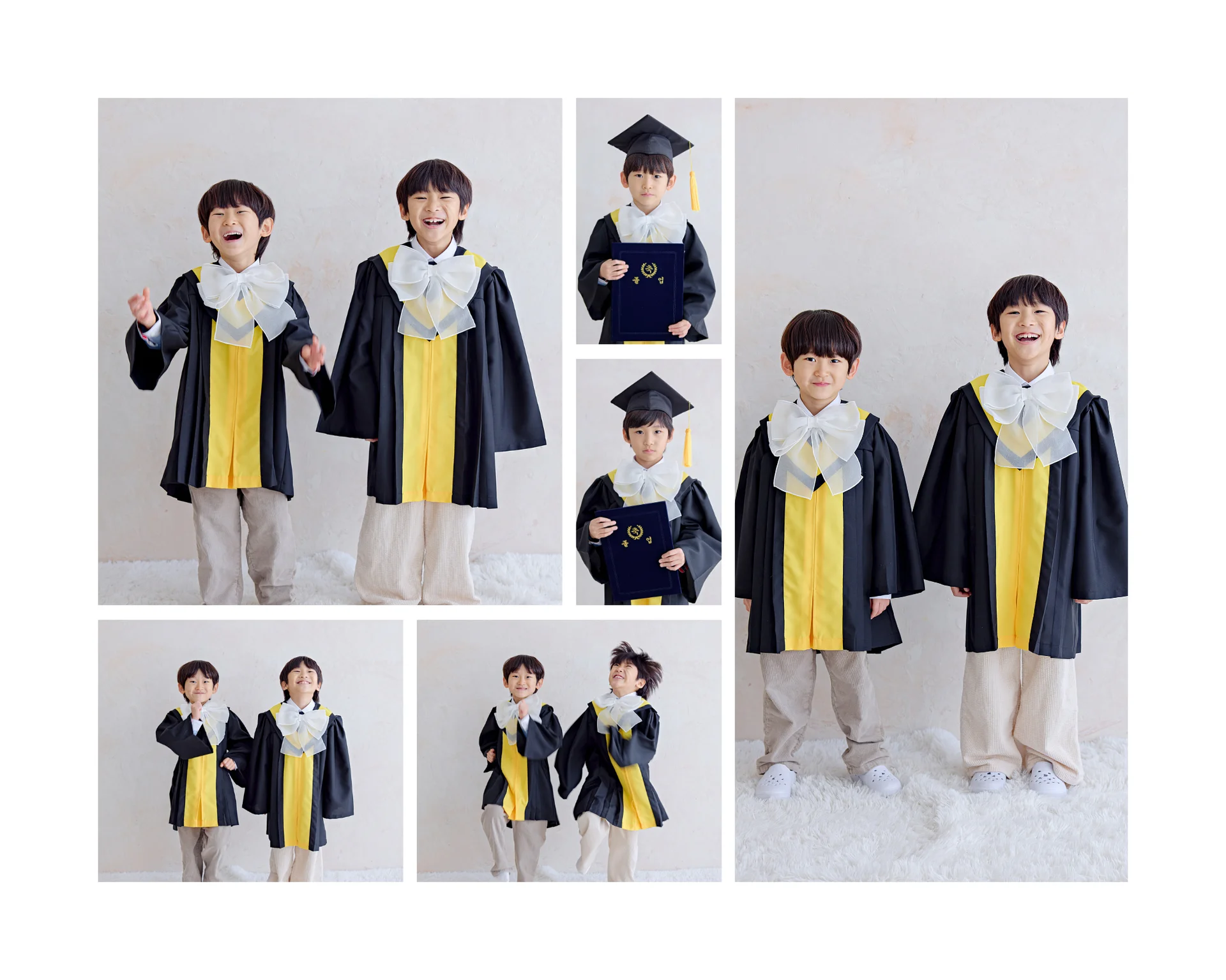 두 가지 무드의 조화: 시월의사진관은 정석적인 학사모 컷과 함께, 아이가 자유롭게 웃고 노는 찰나를 담는 스냅 컷을 병행합니다.