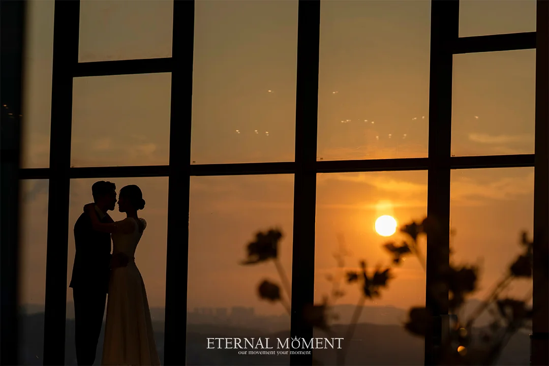 A. 노을 촬영은 기상 상황과 예식 타임(마지막 타임)에 따라 유동적으로 진행됩니다. 이터널모먼트와 상담 시 마지막 예식임을 알려주시면, 현장 상황에 맞춰 최대한 아름다운 엔딩 컷을 남기실 수 있도록 시간을 배정해 드립니다.