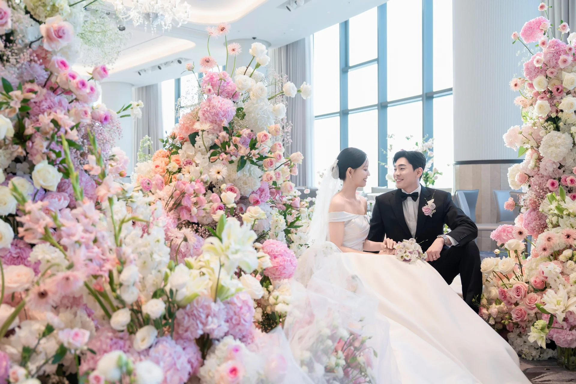 야외 감성 구현 | 파스텔톤 생화 데코를 활용한 야외 웨딩 무드 극대화 | 실내 베뉴에서 누리는 이국적인 스냅 소장 |