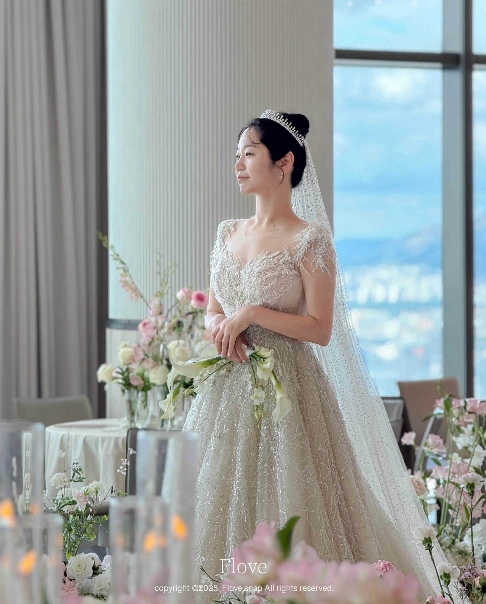 파노라마홀의 대기실은 채광이 부드럽게 분산되어 신부님의 설레는 표정을 담기에 최적입니다. 플로브스냅은 신부님의 모습뿐만 아니라 그날의 무드를 보여주는 부케와 장신구의 디테일까지 감각적으로 박제합니다.
