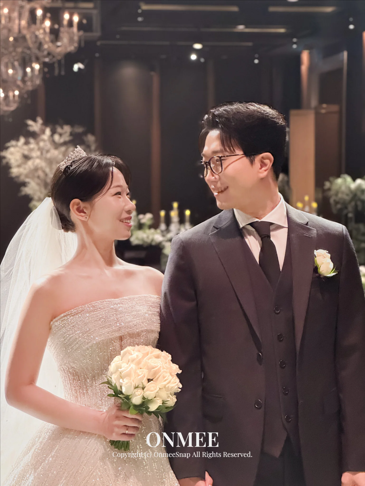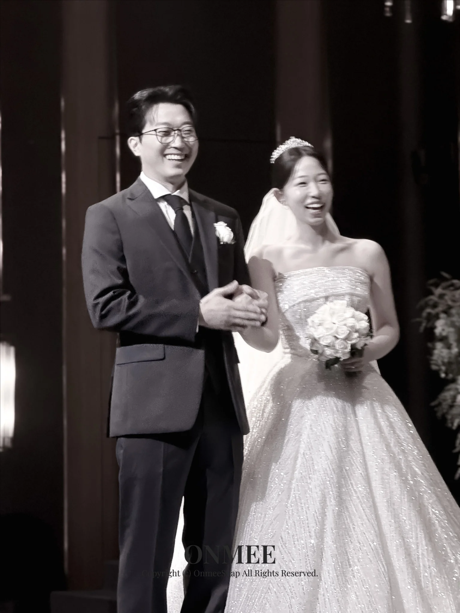 A. 저조도 환경에서 아이폰은 노출 조절이 중요합니다. 온미스냅은 현장 조명에 맞춰 수동으로 노출값을 미세하게 조정하며 촬영하므로, 어두운 홀에서도 노이즈를 최소화하고 피부톤은 화사하게, 배경은 고급스럽게 표현할 수 있습니다.