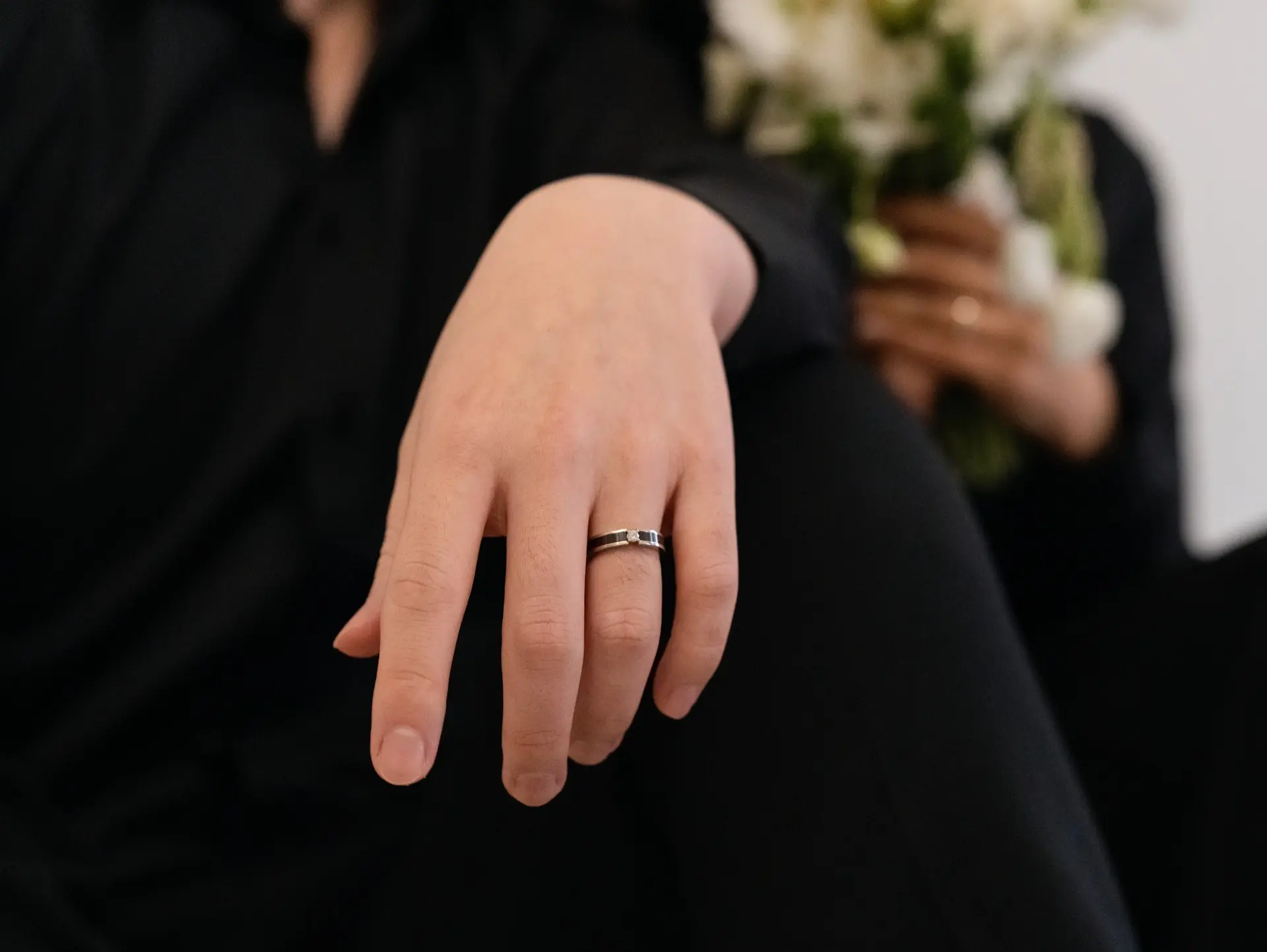 넥라인을 날렵하게 정리해 주는 얇은 넥타이는 수트 핏을 한층 더 깔끔하게 만들어줍니다. 사진의 완성도는 이런 작은 디테일에서 결정됩니다.