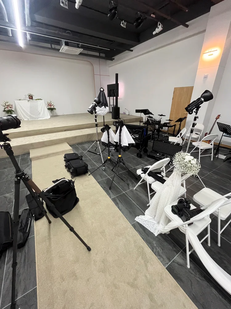 • 조명 위치 수시 조정: 교회식 순서에 맞춰 조명 위치를 수시로 조정하여 예식의 흐름을 해치지 않으면서도 인물에 집중되는 빛을 확보합니다.