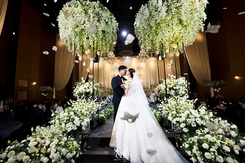 전남 무안과 목포 지역에서 웅장한 공간감과 화려한 조명 연출로 예비 신랑신부님들의 압도적인 지지를 받는 베뉴, 바로 ‘무안 스카이웨딩컨벤션’입니다. 오늘은 이곳 3층 그랜드엘렌홀에서 인물의 결을 가장 깨끗하게 담아내는 이매진포토 작가님의 본식스냅 기록을 소개해 드립니다. 정제된 조명과 유연한 디렉팅이 만든 영화 같은 하루를 함께 살펴보시죠.