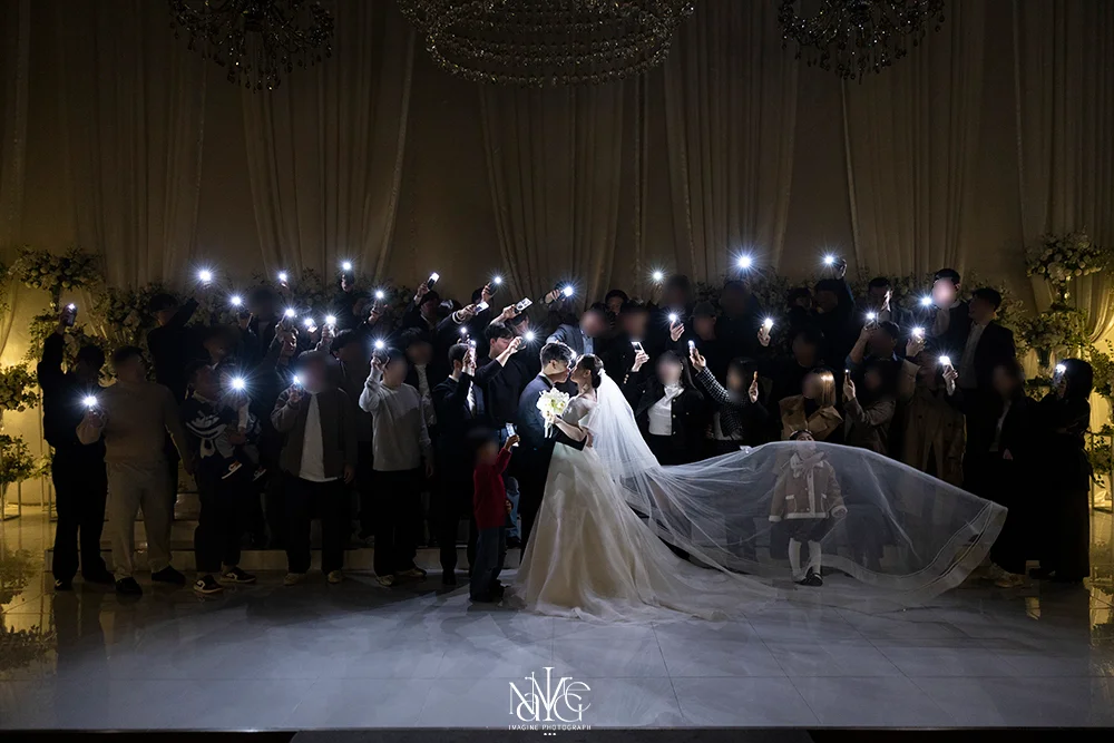 A. 네, 그랜드엘렌홀은 조명 설계가 훌륭하여 인물 집중도가 높습니다. 이매진포토는 여기에 전문 보조 조명을 더해, 어두운 배경 속에서도 인물은 화사하고 조명은 보석처럼 반짝이는 고품격 본식 스냅을 약속드립니다.