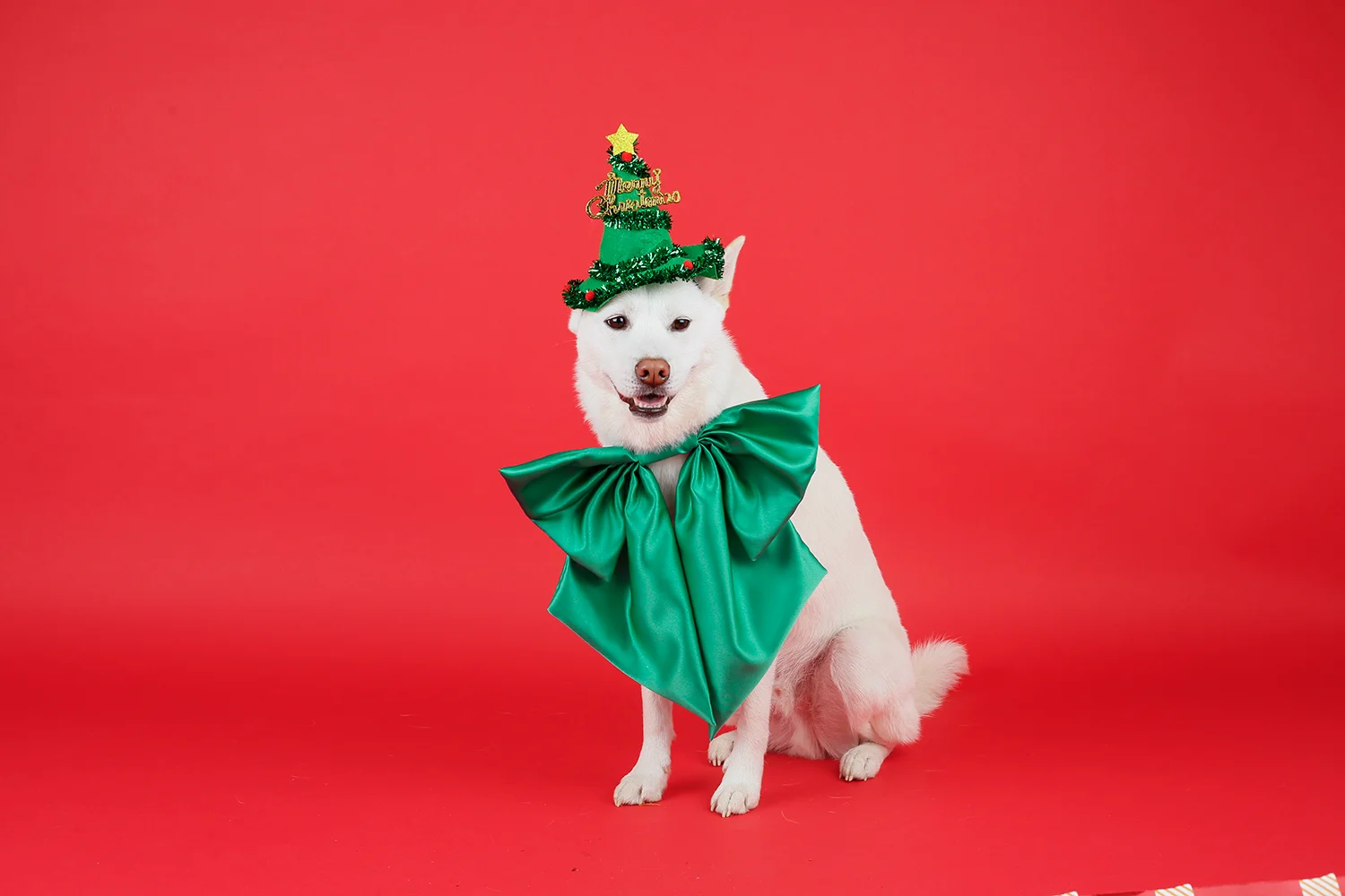 • 악세사리: 크리스마스 왕리본, 미니 트리 모자 등 강아지에게 부담되지 않도록 1~2개만 포인트로 사용했습니다.