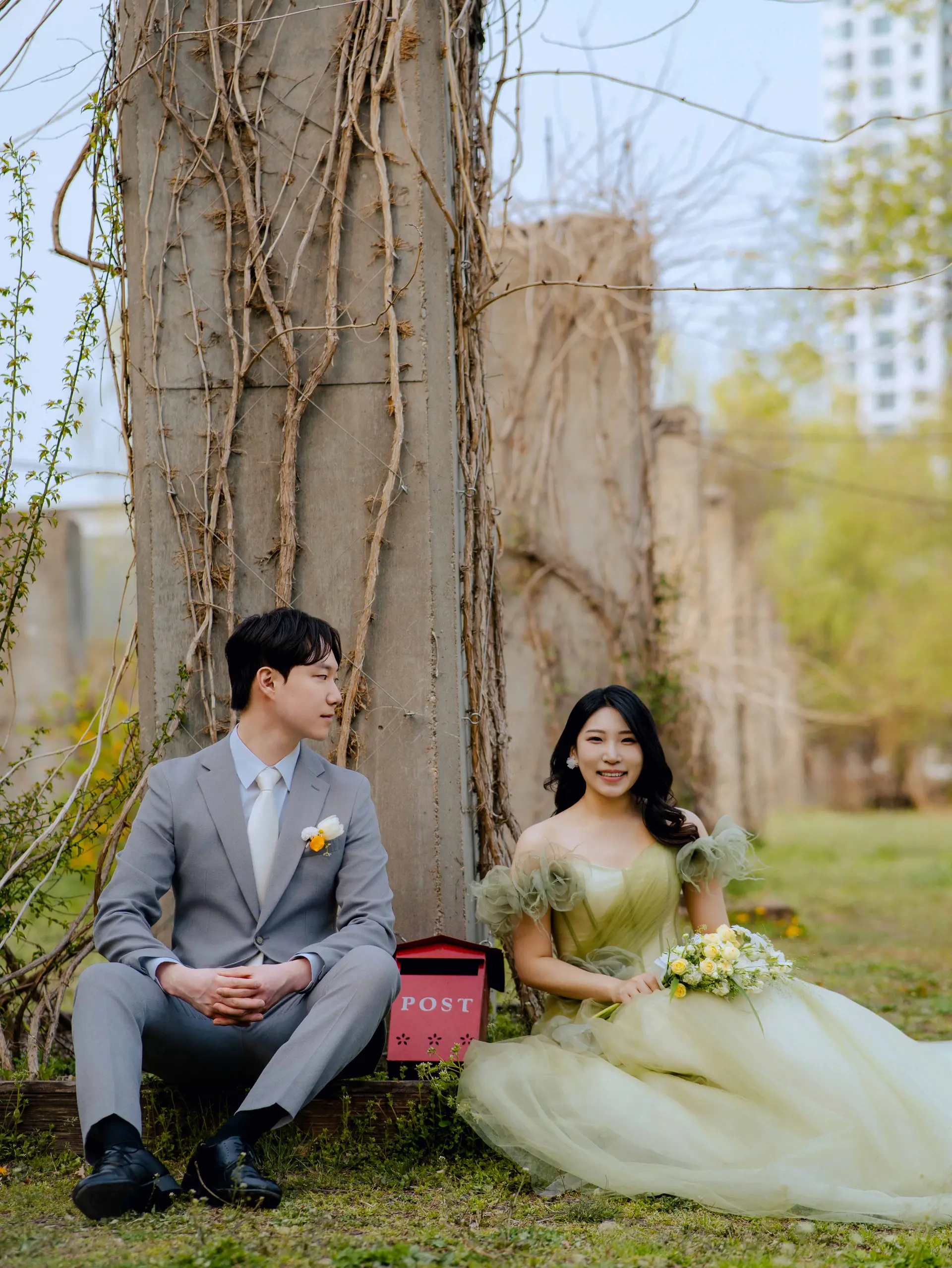 A. 자연의 초록빛과 조화를 이루는 내추럴 컬러 또는 화이트 톤의 의상을 추천합니다. 너무 화려한 패턴보다는 톤온톤 의상이 인물을 더 돋보이게 하며, 유운필름의 감성적인 보정 톤과도 잘 어우러집니다.