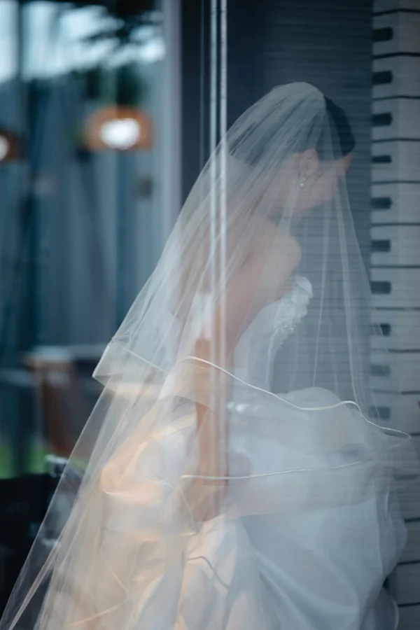 A. 야외에서는 자연광과 바람의 영향을 많이 받습니다. 따라서 화려한 비즈 장식보다는 실크오간자처럼 소재의 질감이 잘 표현되는 드레스나, 움직임에 따라 라인이 부드럽게 연출되는 트레인 드레스가 사진에 더 고급스럽게 담깁니다.