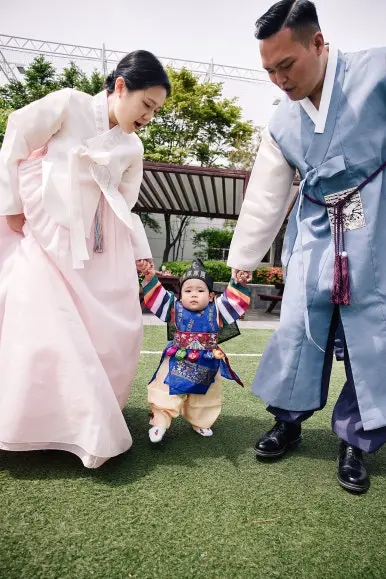 마침 9층 풋살경기장 방향 옥상이 조용하고 채광이 좋아 야외 스냅 촬영 장소로 최적이었으며, 덕분에 아이와 양가 가족분들이 함께 웃는 밝고 자연스러운 장면들을 풍성하게 담을 수 있었습니다. 용산 돌스냅을 고민하시는 분들은 이처럼 유동적인 공간 활용을 염두에 두시는 것을 추천합니다.