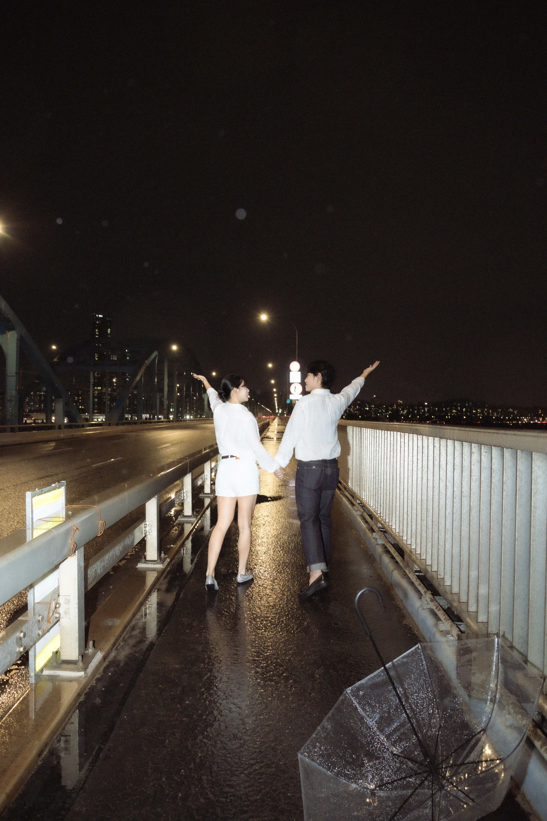 서울 야외웨딩스냅 명소, 동작대교 우중 야경 스냅 후기! 오프그리드가 알려주는 라이트 트레일 컷, 투명 우산 활용 팁 등 비 오는 날에도 감성적인 다리 웨딩스냅 촬영 포인트를 확인하세요.