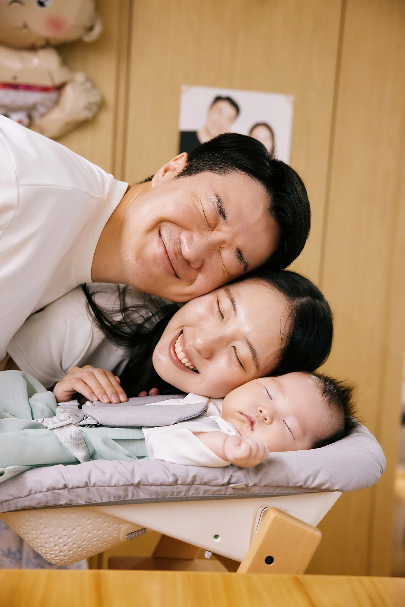 • 기다림의 미학: 작가님은 시간에 쫓겨 아기를 억지로 깨우지 않습니다. 아기가 평소 쓰던 의자에 눕힌 뒤, 엄마 아빠가 아기를 감싸 안는 유니크한 컨셉 샷을 즉석에서 기획했습니다.