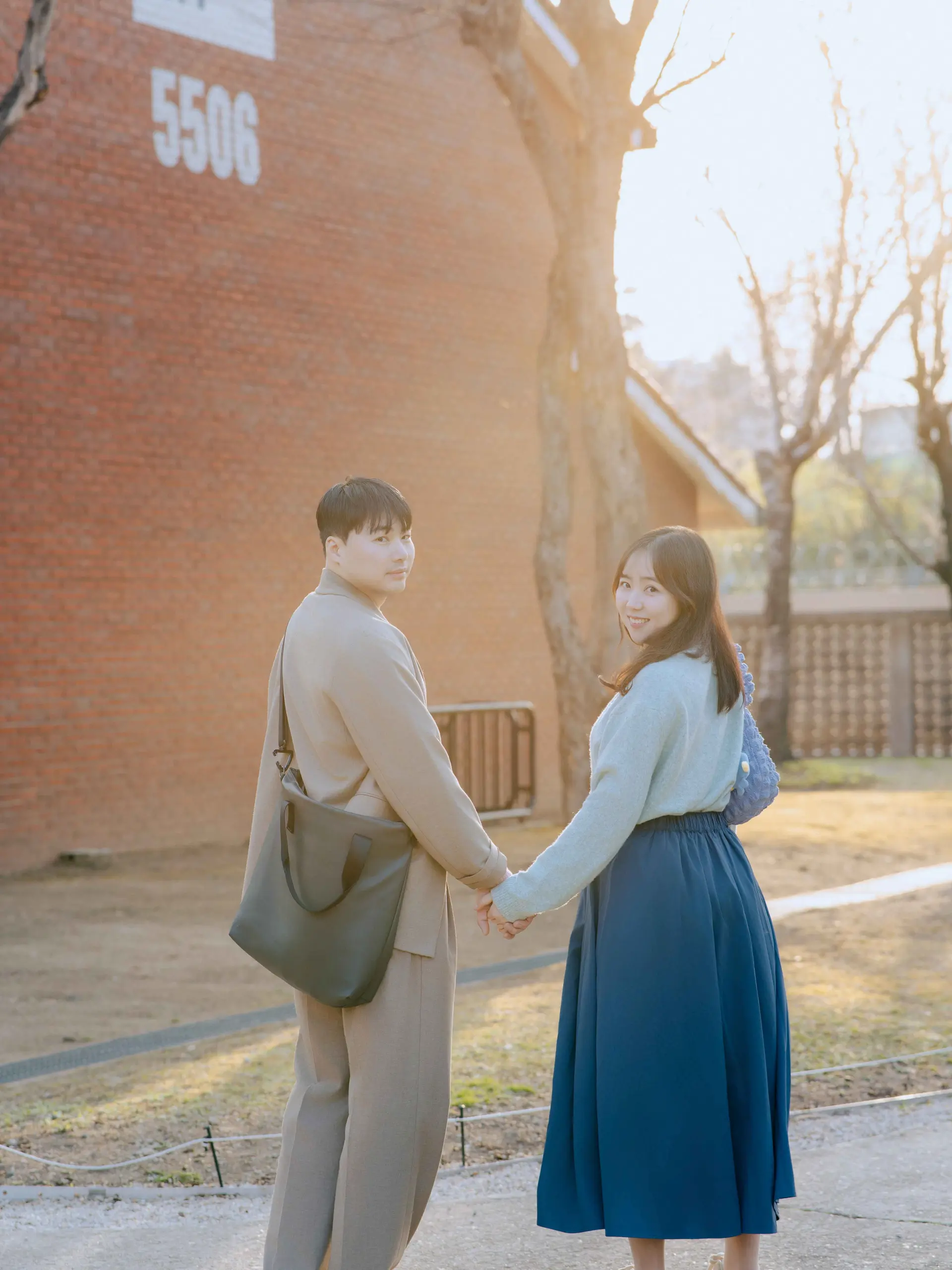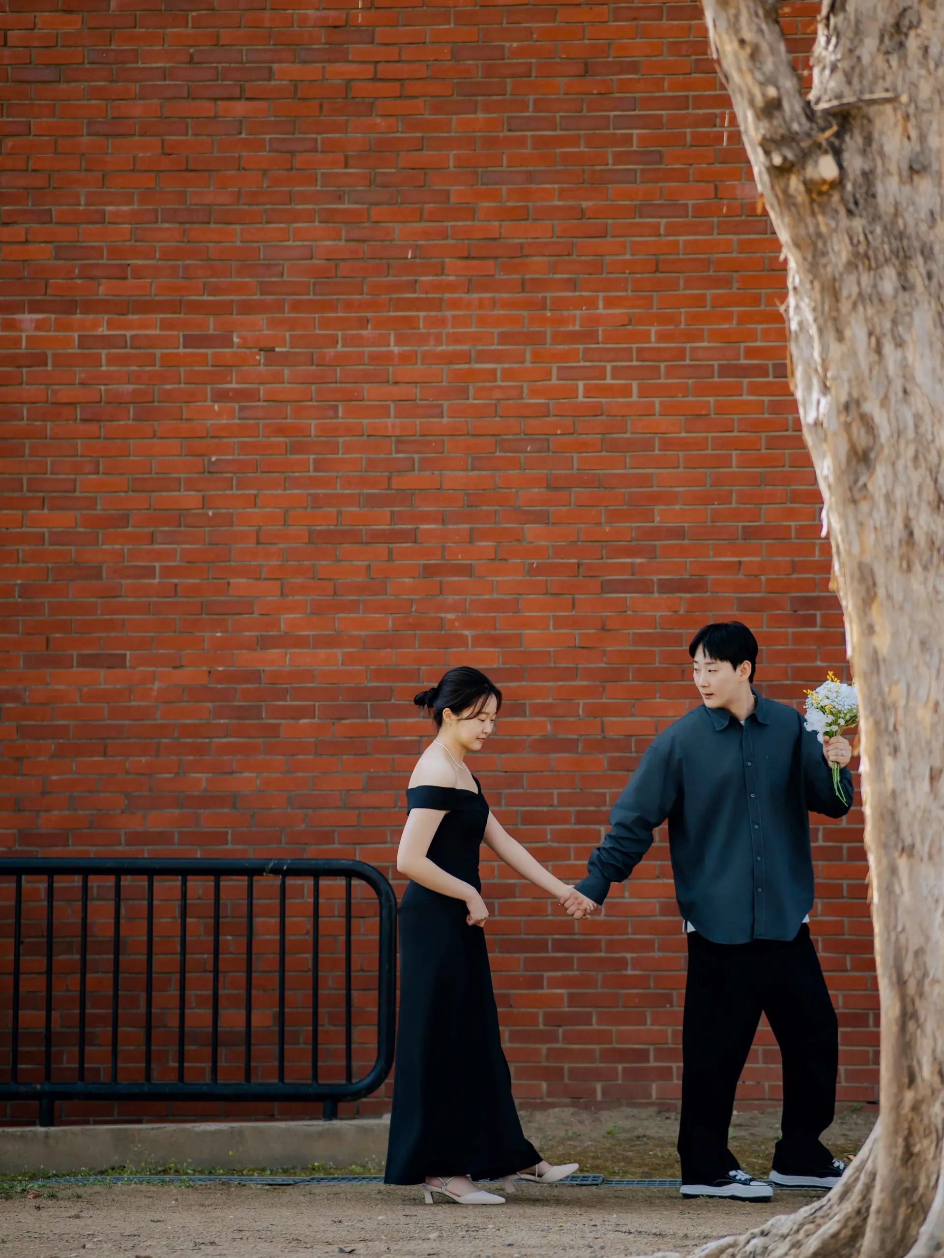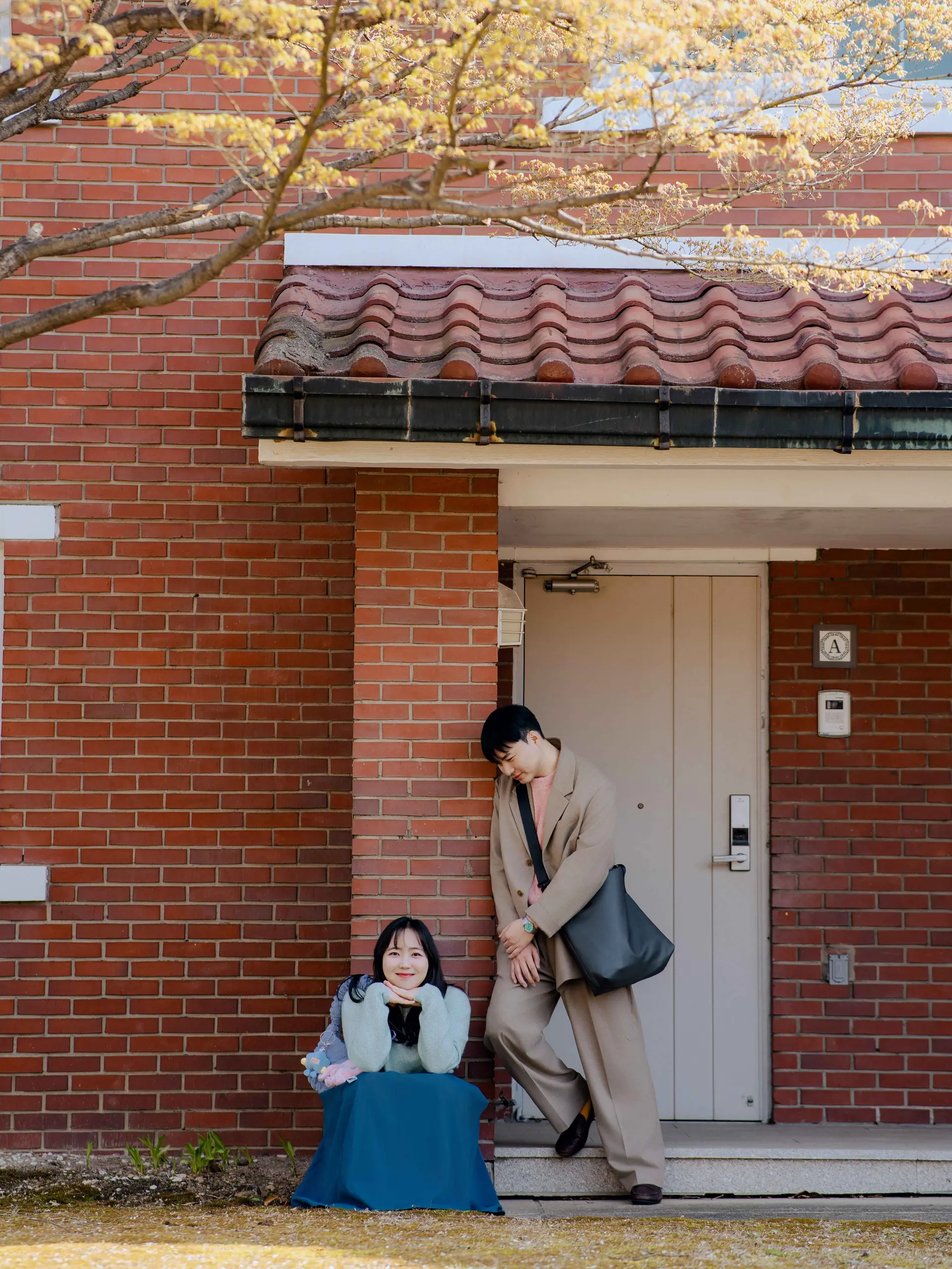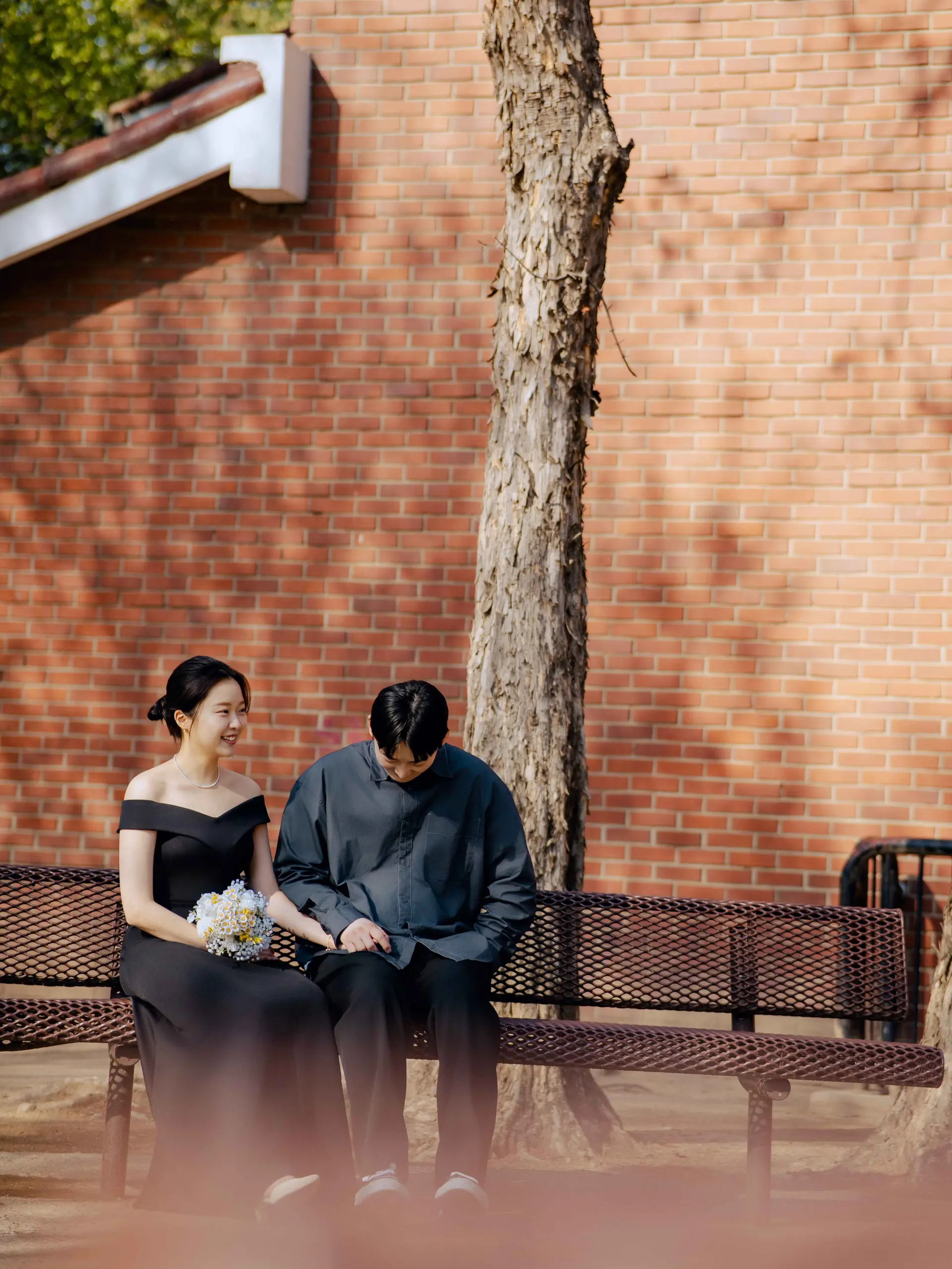 A. 용산공원은 빈티지한 배경이 강점이지만, 붉은 벽돌이나 계단 등은 클래식한 웨딩드레스에도 이국적인 화보 느낌을 줍니다. 드레스, 캐주얼 모두 잘 어울리므로, 두 가지 컨셉을 준비해 다채롭게 연출하는 것을 추천합니다.