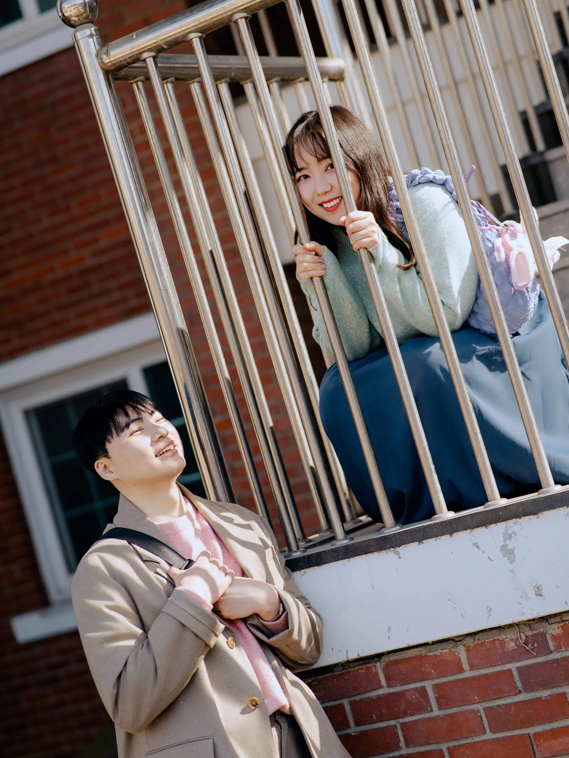계단/난간 | 막 상대를 만나 반가워하는 역동적인 장면, 아련하고 잔잔한 분위기의 인물컷 |