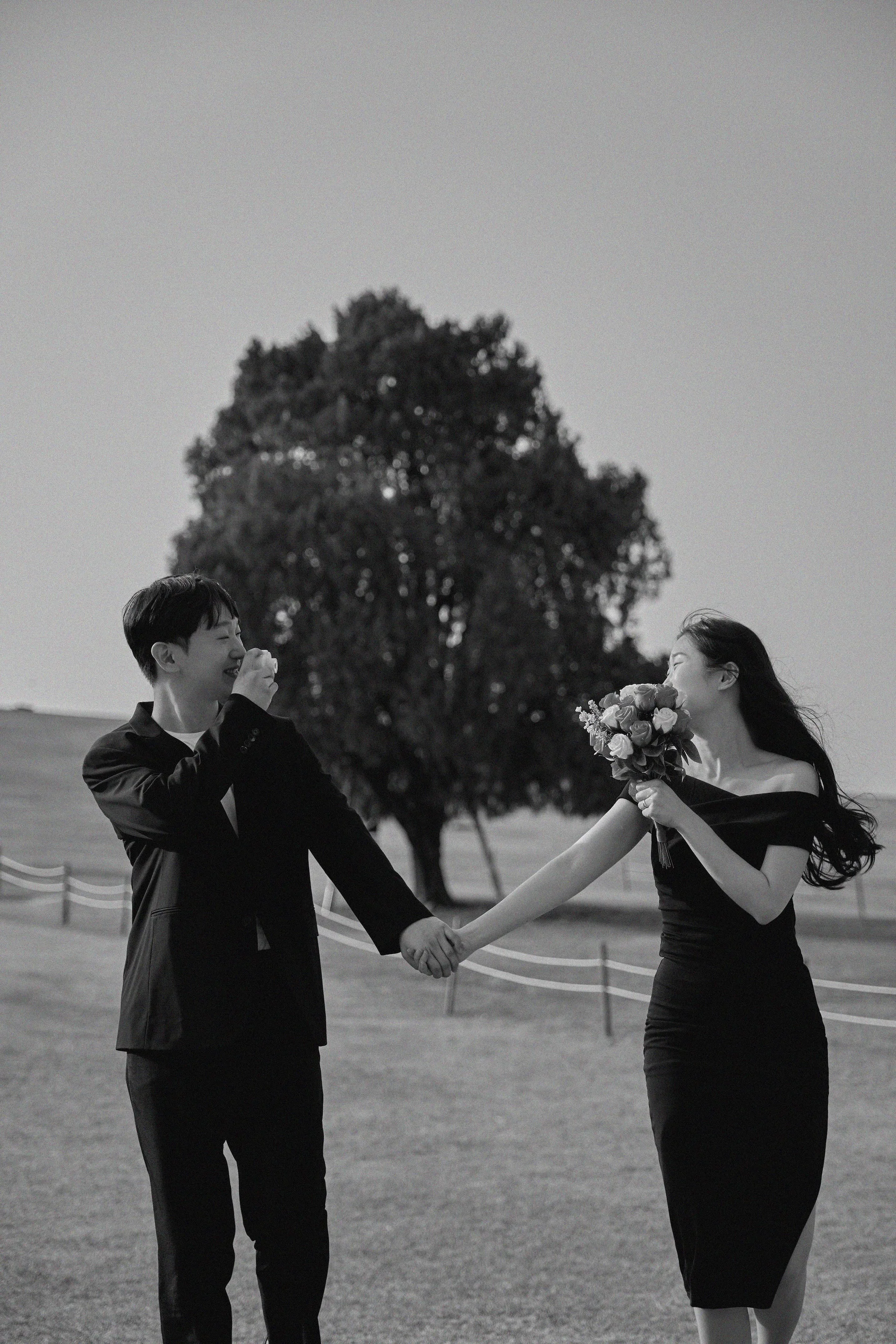 • 반전 매력의 소품: 시크한 의상과 대비되는 붉은 장미 부케와 귀여운 비눗방울, 빈티지 카메라 소품을 활용했습니다. 이 장치들은 자칫 딱딱해질 수 있는 블랙 무드에 감성적인 온기를 불어넣어 주어 클래식과 캐주얼을 넘나드는 다채로운 컷들을 만들어냈습니다.