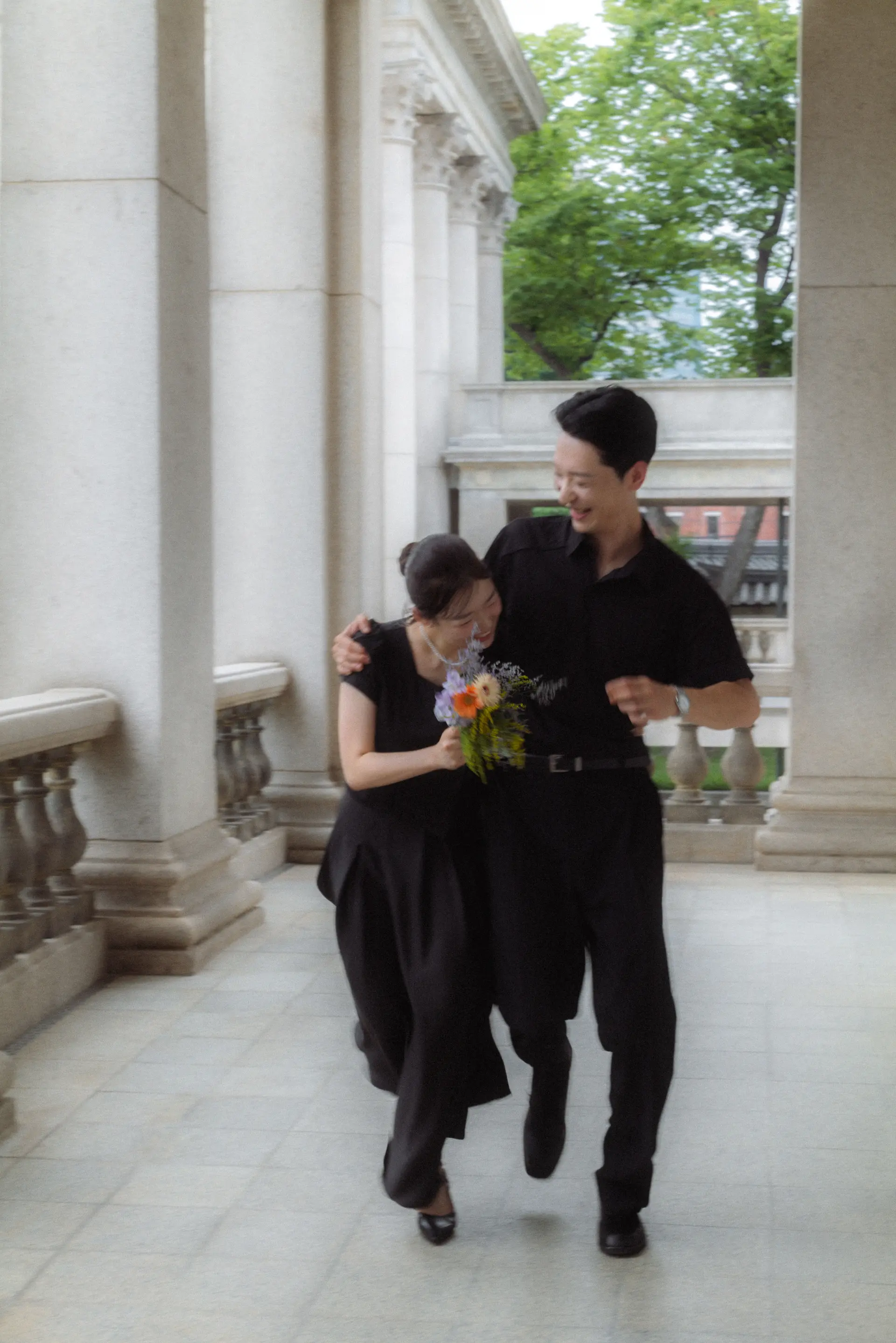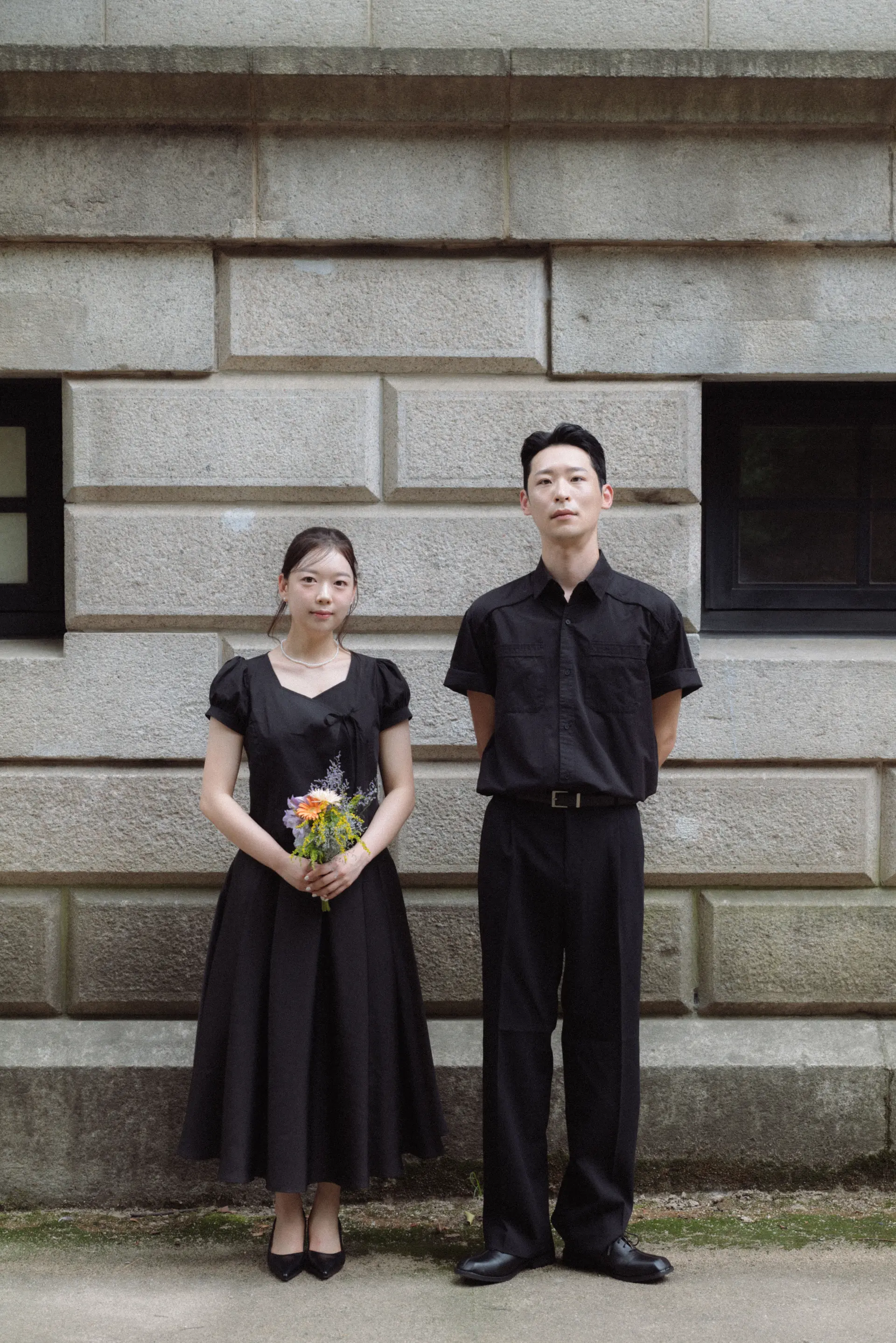 덕수궁 석조전 야외 촬영은 클래식한 무드를 살리기 위해 미니멀한 의상 톤으로 잔잔한 포즈 위주로 진행했습니다. 도심 속에서 웅장한 느낌을 줄 수 있어 야외웨딩스냅을 원하는 분들께 추천됩니다.