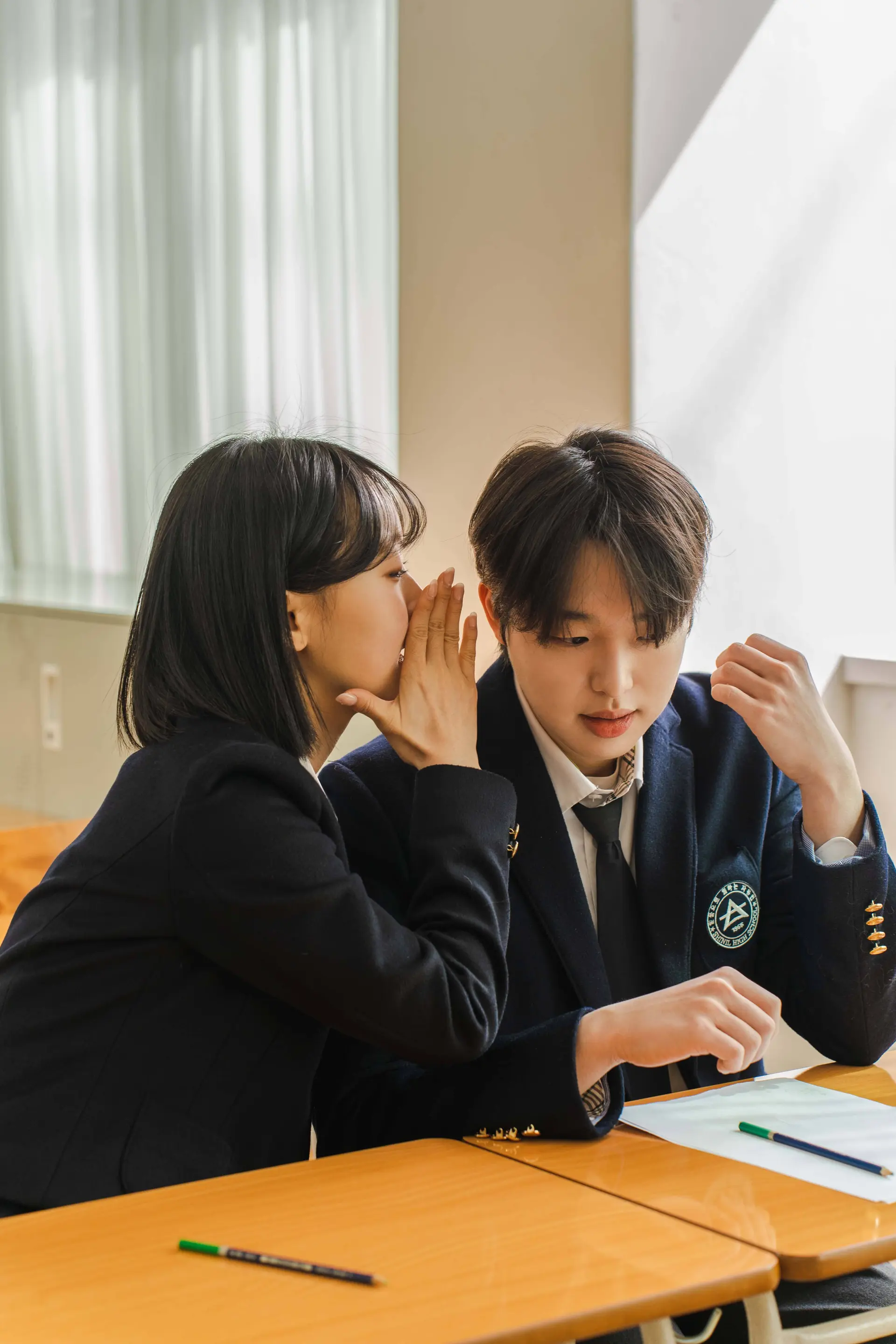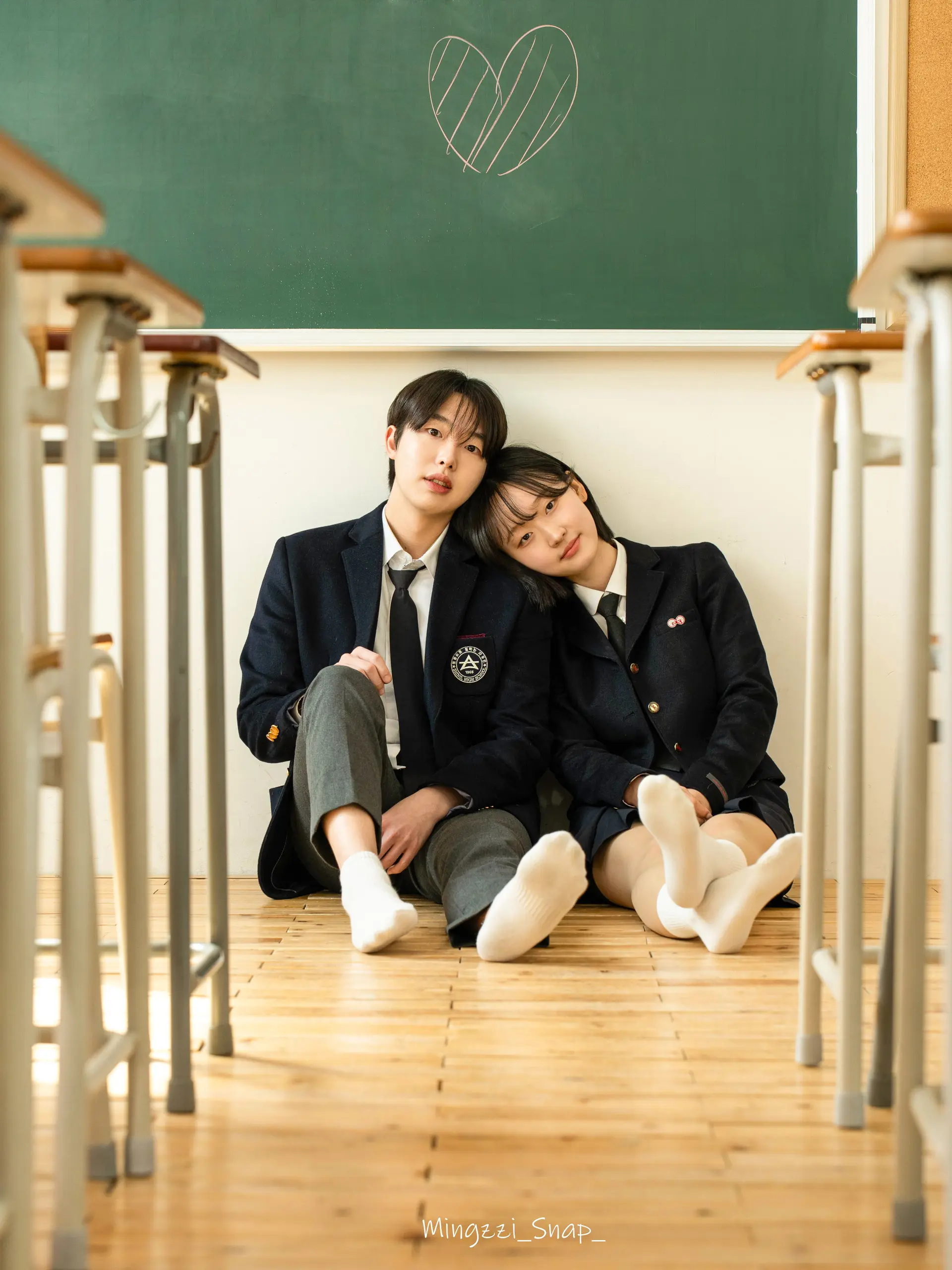 "교복 입고 교실에서 사진 찍으니까 진짜 고등학교 시절로 돌아간 것 같았어요! 너무 자연스럽고 편하게 촬영할 수 있게 분위기를 잘 만들어주셔서, 저희 둘 다 긴장 안 하고 오히려 더 몰입했어요 :)"
