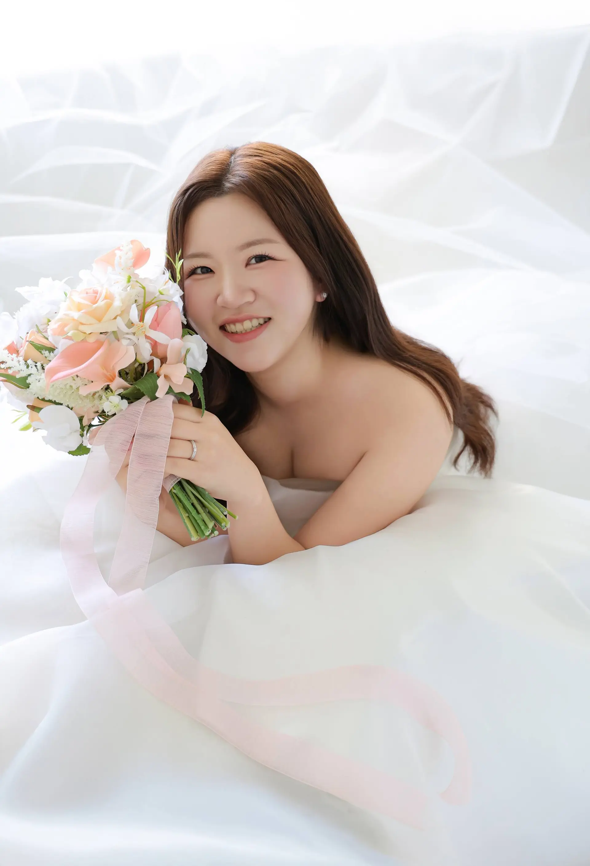 • 공간의 매력: 전면 채광창을 통해 들어오는 풍부한 자연광이 인물의 피부 결을 투명하게 살려줍니다. 깔끔한 화이트 배경은 어떤 드레스나 소품과도 조화롭게 어우러져 '인물 중심'의 세련된 결과물을 만들어냅니다.