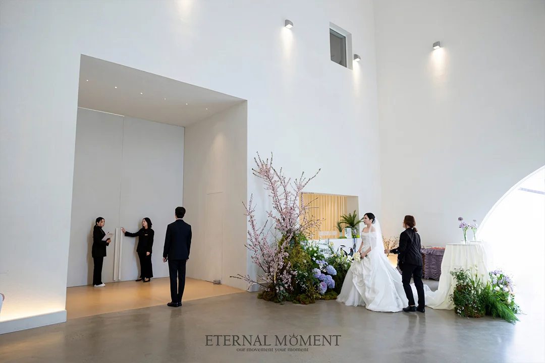 • 여유로운 6시간 대관: 하루 오직 2타임만 운영되는 시스템 덕분에 본식 준비부터 애프터파티까지 서두르지 않고 꼼꼼하게 기록할 수 있었습니다. 하객들과 여운을 즐기는 모든 찰나가 이터널모먼트의 렌즈를 통해 기록되었습니다.