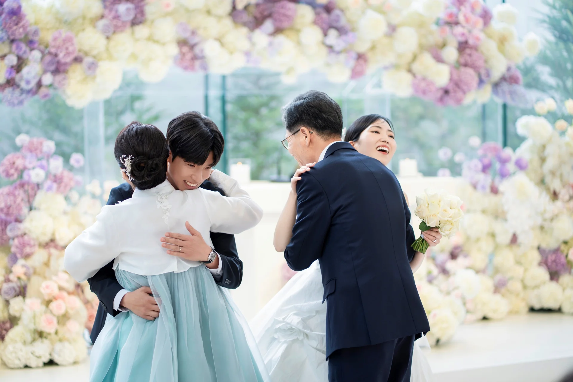 • 영화 같은 한 장면: 이번 촬영에서 두 분은 본식 전 야외 정원에서 연출 컷을 진행했습니다. 숲의 녹음과 두 분의 미소가 어우러진 장면은 하객들로부터 마치 영화 ‘트와일라잇’의 한 장면 같다는 찬사를 받았습니다.