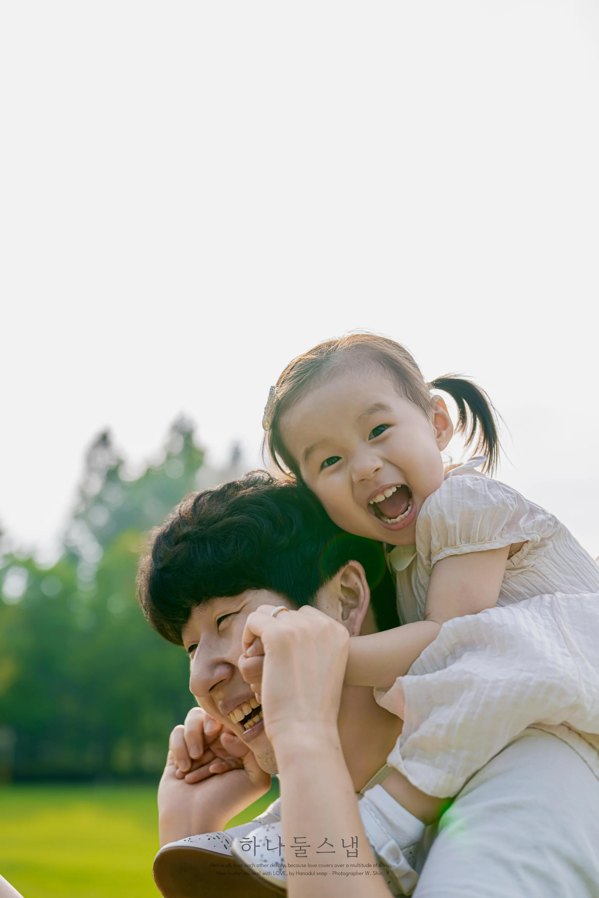공간의 완성: 평범한 잔디밭도 하나둘스냅의 소품이 더해지면 세상에 하나뿐인 야외 스튜디오로 변신합니다. 소품 준비 시간을 줄인 만큼, 가족의 교감에 더욱 집중할 수 있습니다.